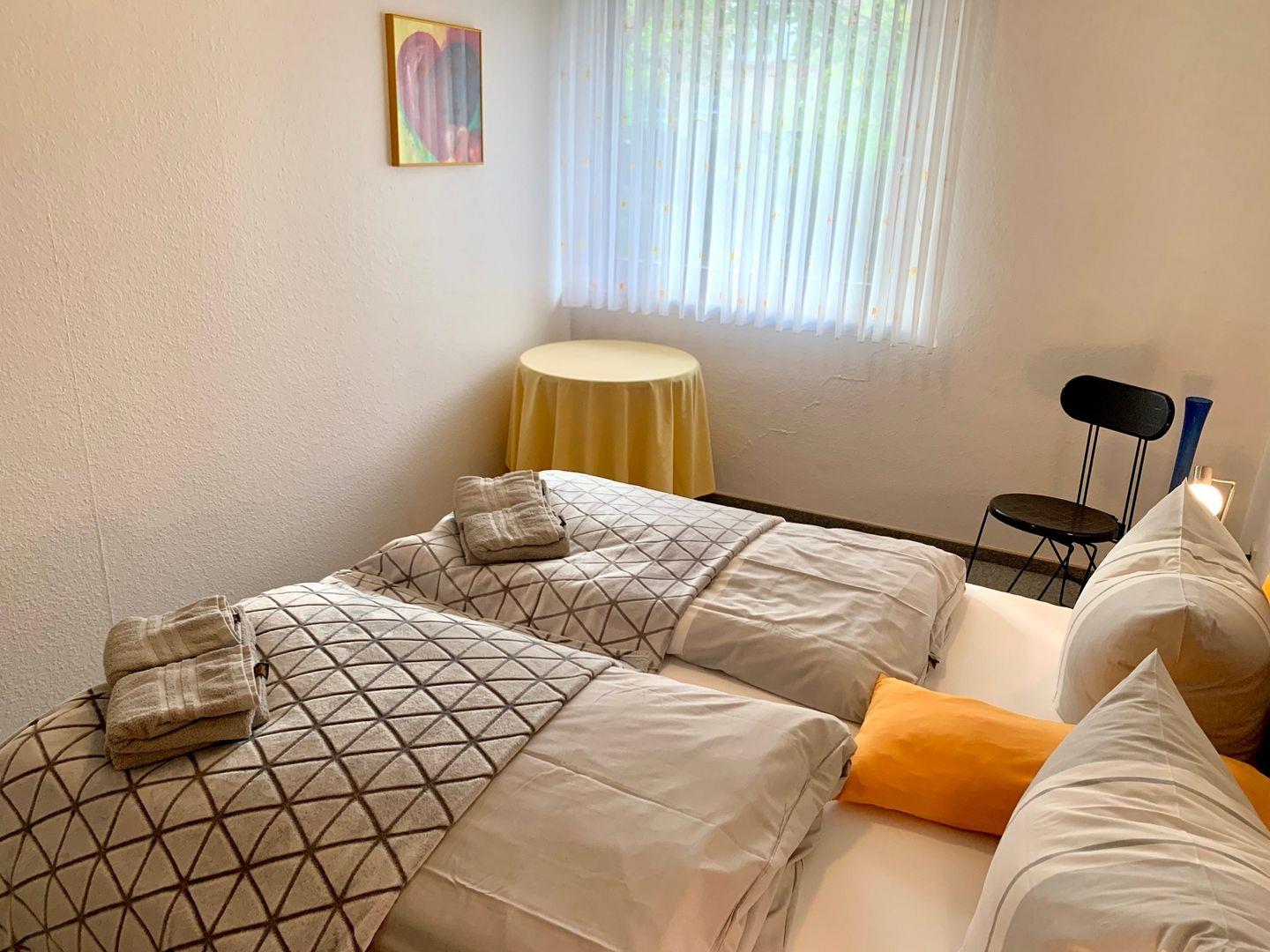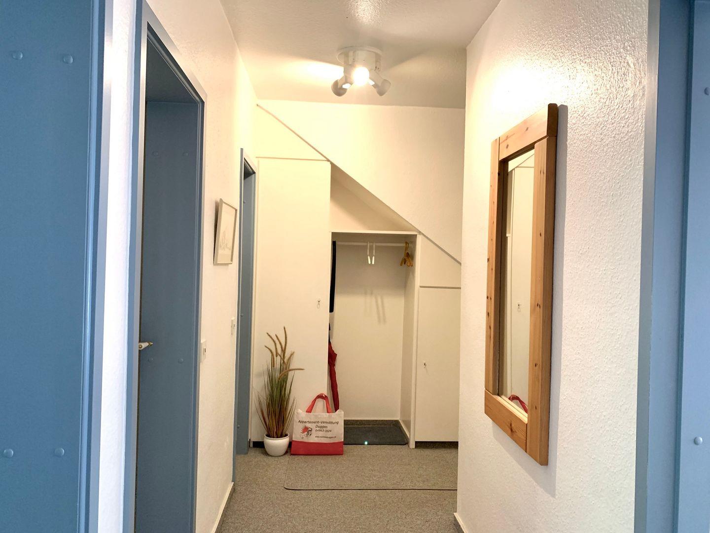 Komplett mit Teppich ausgelegt. Nichtraucher, keine Haustiere, PKW-Stellplatz, W-LAN, Terrasse.