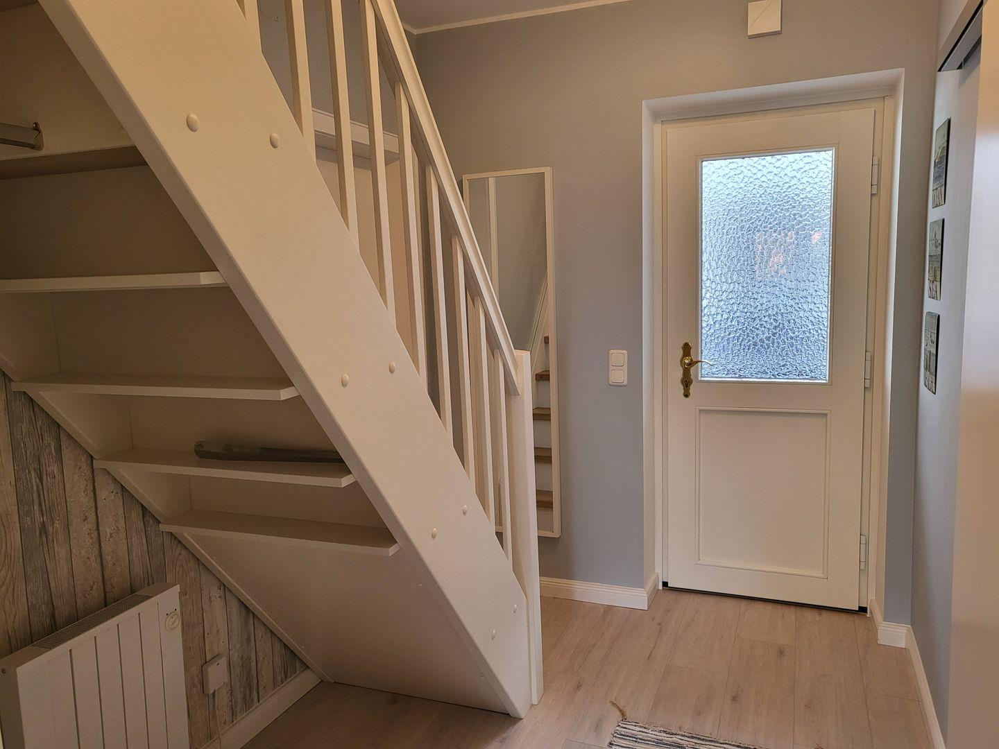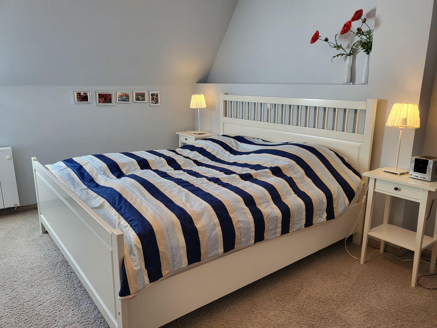 Die 63m² große Ferienwohnung für bis zu 4 Personen liegt im Obergeschoss und erstreckt sich über zwei Ebenen.