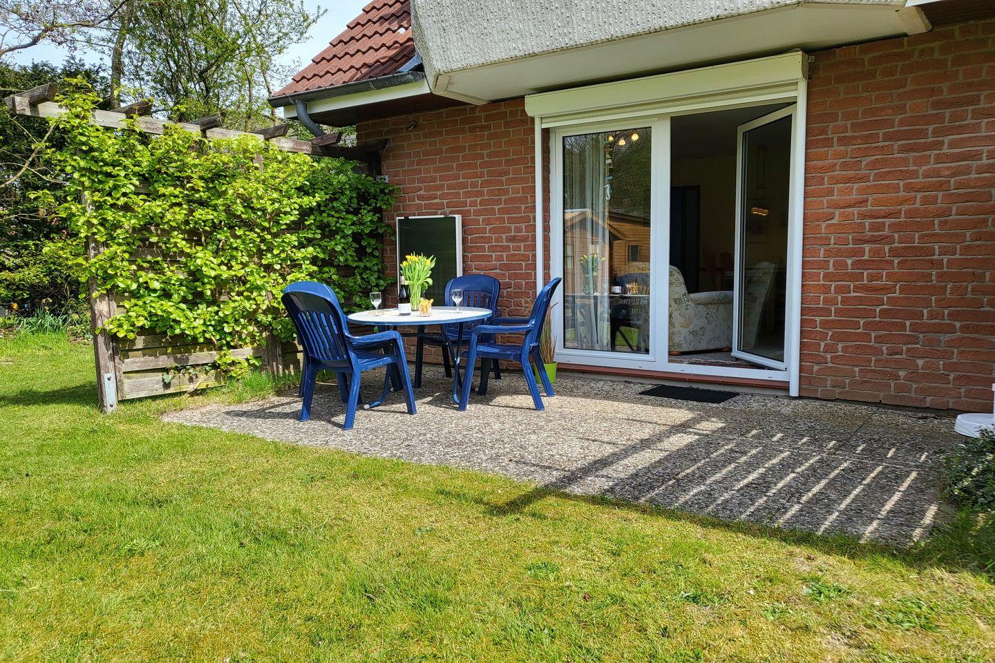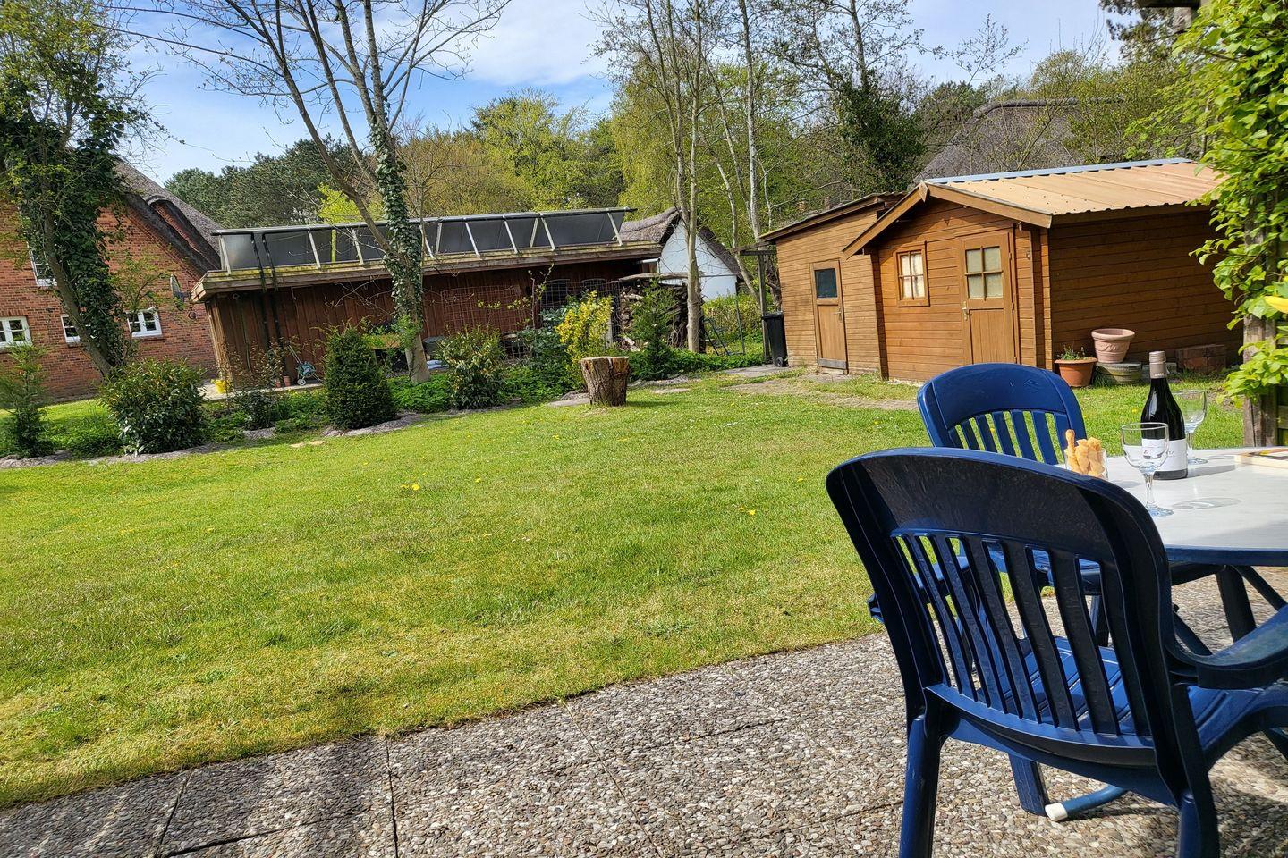 Zur Ferienwohnung gehört eine möblierte Terrasse und die Mitnutzung des Gartens, der sich wunderbar zum Sonnenbaden eignet.