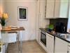 Die separat gelegene Küche ist sehr gut ausgestattet und verfügt unter anderem über Cerankochfeld und Backofen sowie Kühlschrank mit Gefrierfach.