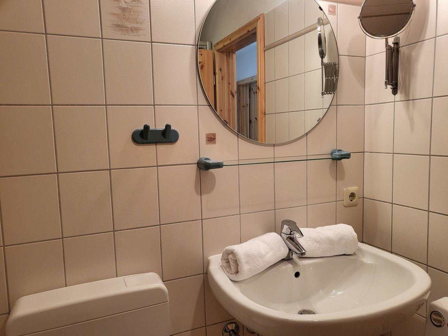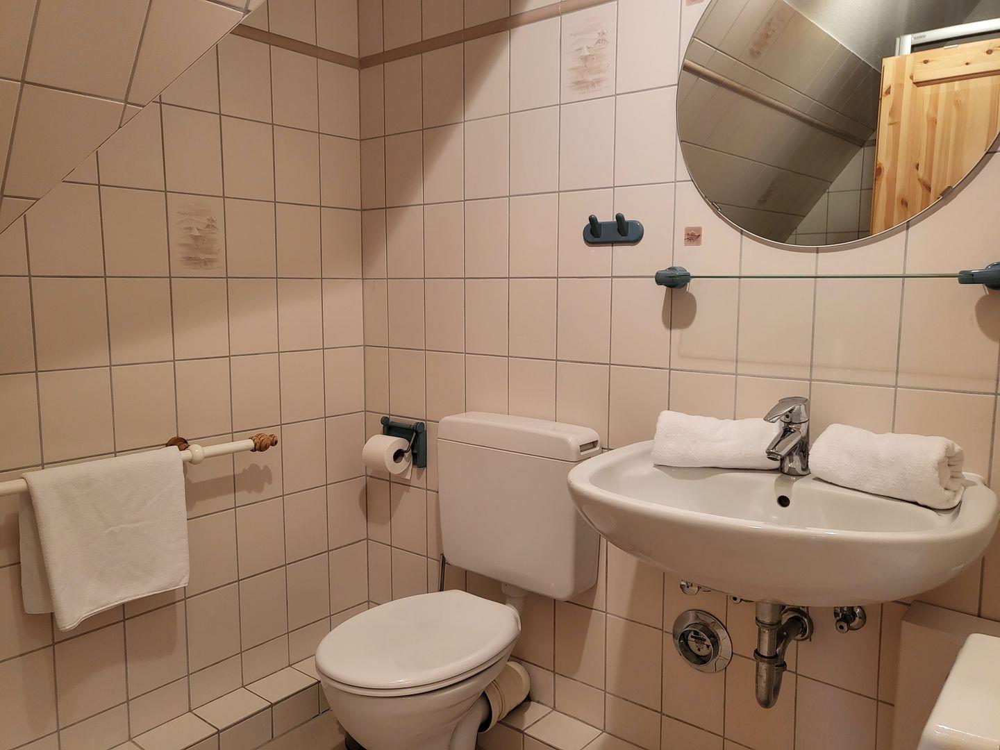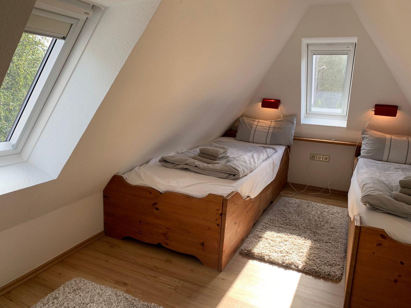 WC, 1 Schlafzimmer mit einem Einzelbett, im DG 2 Einzelbetten, Kinder-Bett u. Hochstuhl,