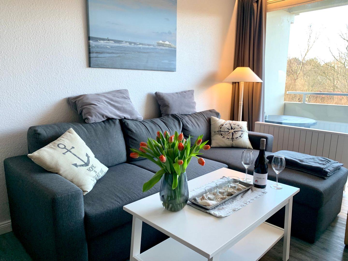 Die 47m² große 2-Zimmer Ferienwohnung liegt im Erdgeschoss Hochparterre und bietet zu 3 Personen Platz für einen wunderbaren Urlaub in St. Peter Ording.