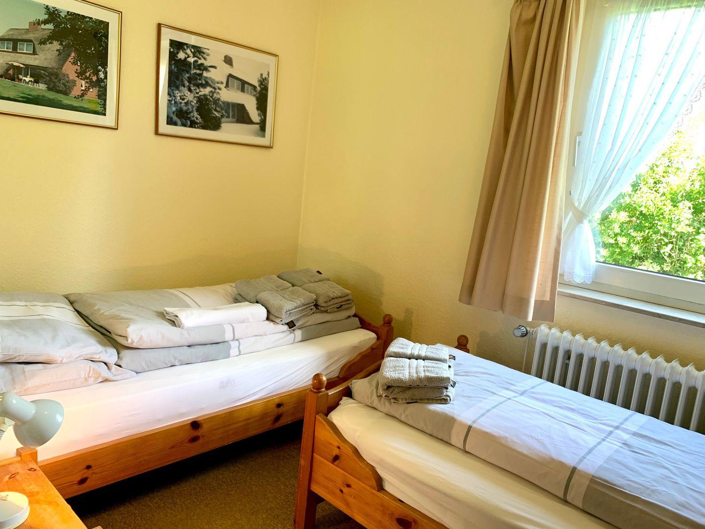 Einzelbetten, Duschbad mit WC, Gem.-Waschraum, Nichtraucher, bis zu 2 Hunde auf Anfrage willkommen.
