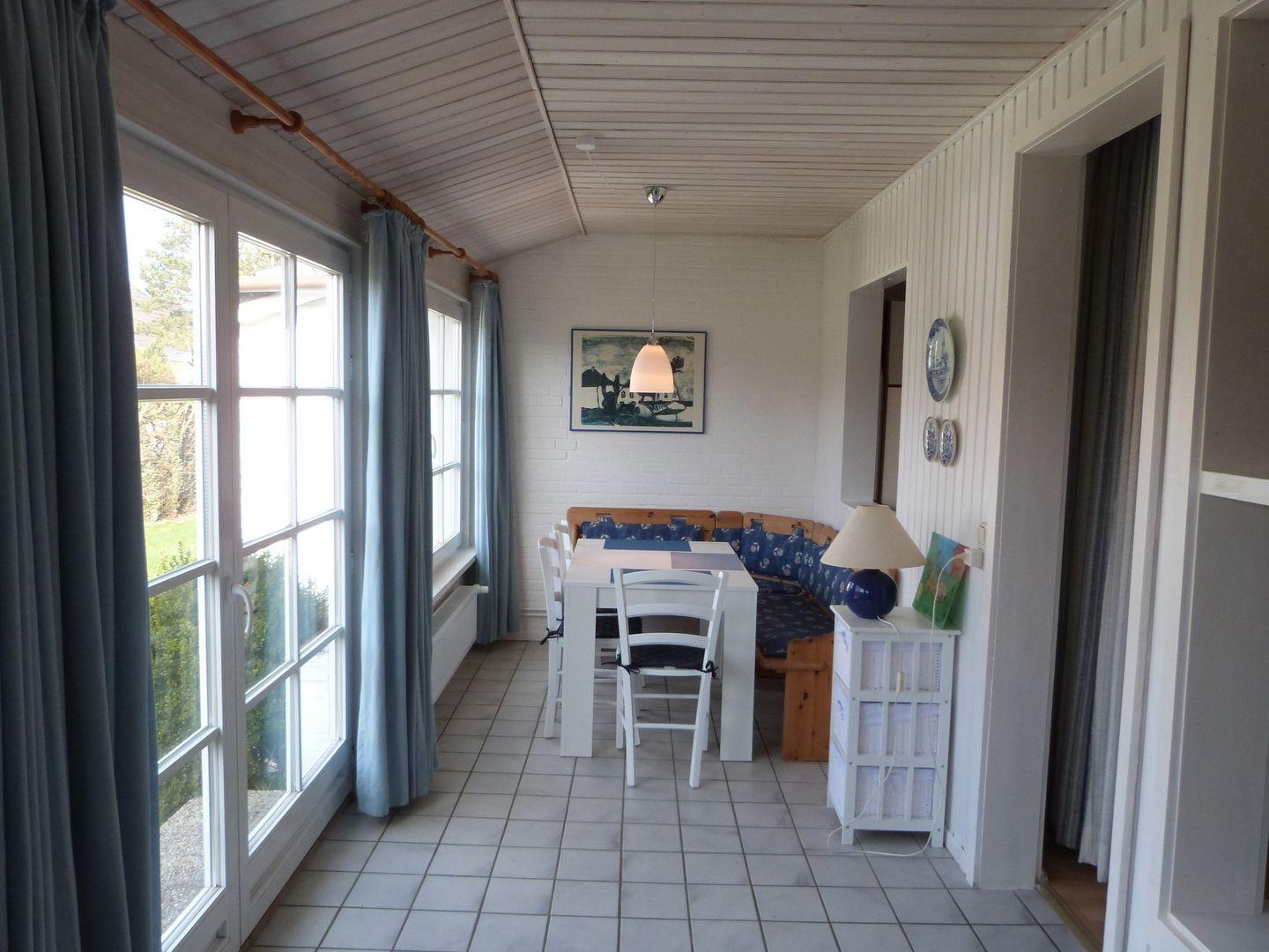 Der Raum ist offen zum Wintergarten, dort steht neben dem Esstisch eine weitere Schlafmöglichkeit zur Verfügung, die tagsüber als Leseecke genutzt werden kann.