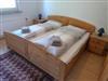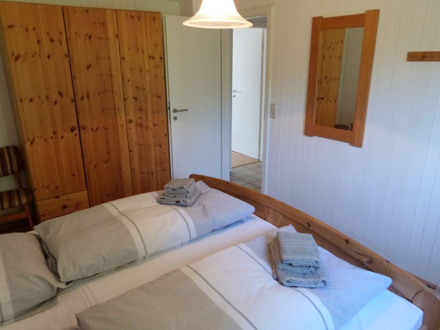 Das separate Schlafzimmer ist ausgestattet mit 180x200cm Doppelbett. Zur Ferienwohnung gehört ein modernes Duschbad mit bodengleicher Dusche und WC.
