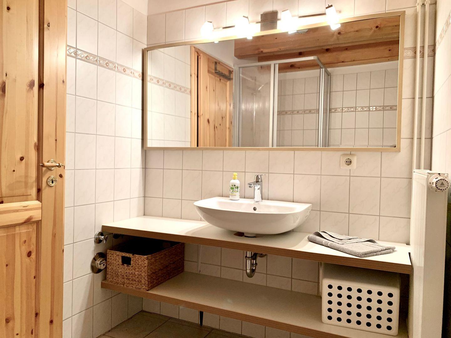 Bei gutem Wetter beginnt der Tag hier mit Frühstück im Freien. Ebenfalls im Erdgeschoss gelegen sind Duschbad mit bodengleicher Dusche und dem WC.