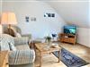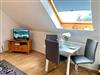 Der Wohnraum ist ausgestattet mit einer gemütlichen Sitzgruppe, Esstisch und Flachbild-TV. Kostenfreies W-LAN steht zur Verfügung.