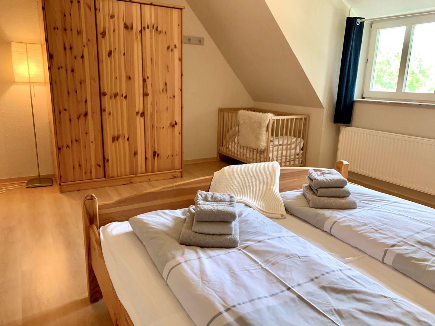 Im Obergeschoss befinden sich die beiden Schlafzimmer der Ferienwohnung.