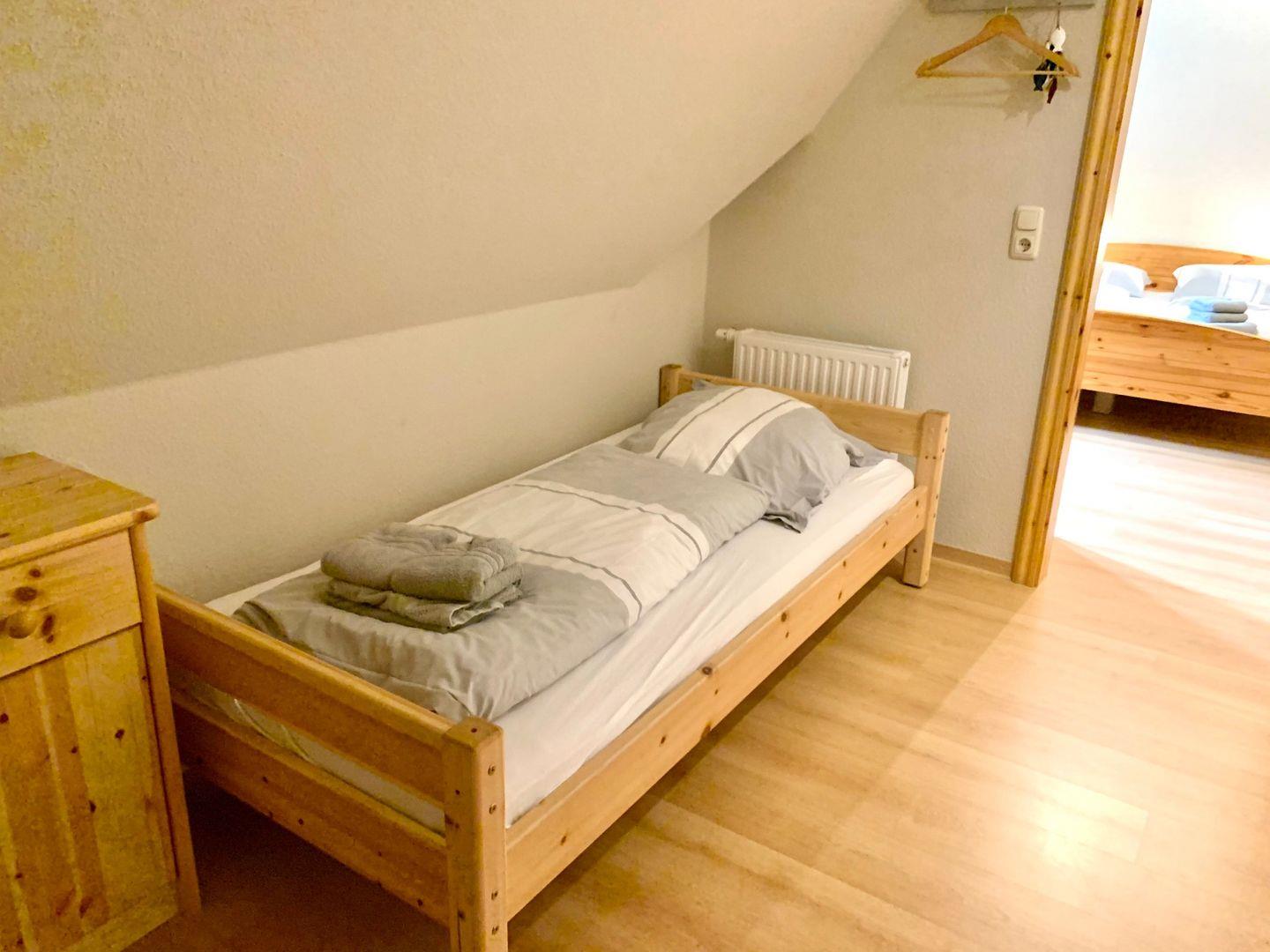 Im Obergeschoss befinden sich die beiden Schlafzimmer der Ferienwohnung.