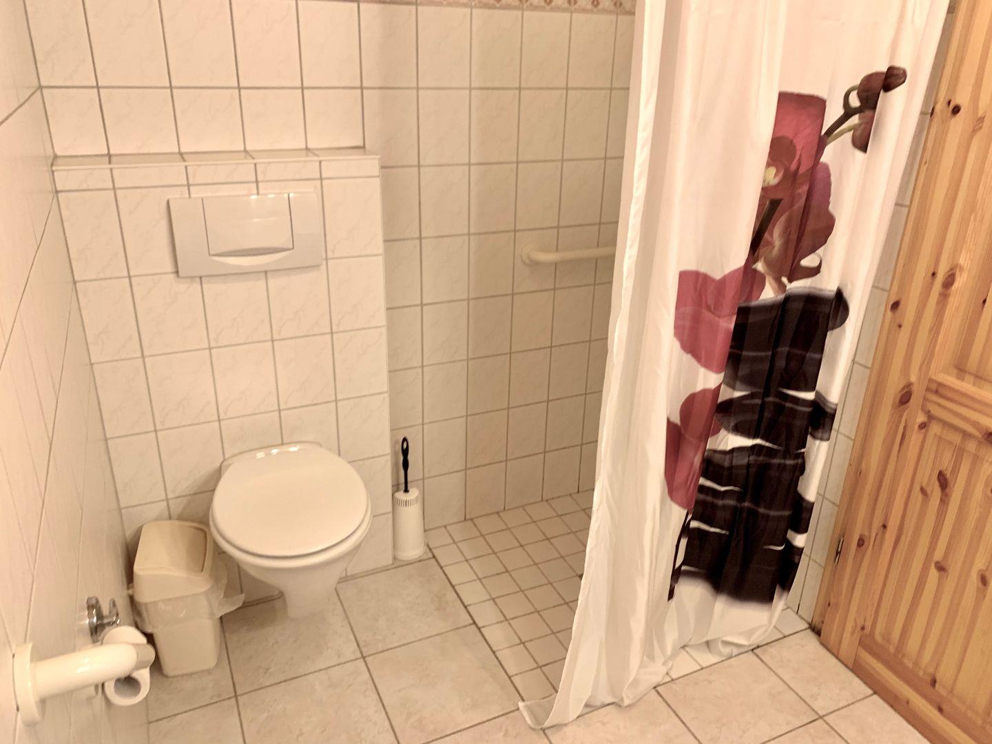 Ebenfalls im Erdgeschoss gelegen sind Duschbad mit bodengleicher Dusche und dem WC.