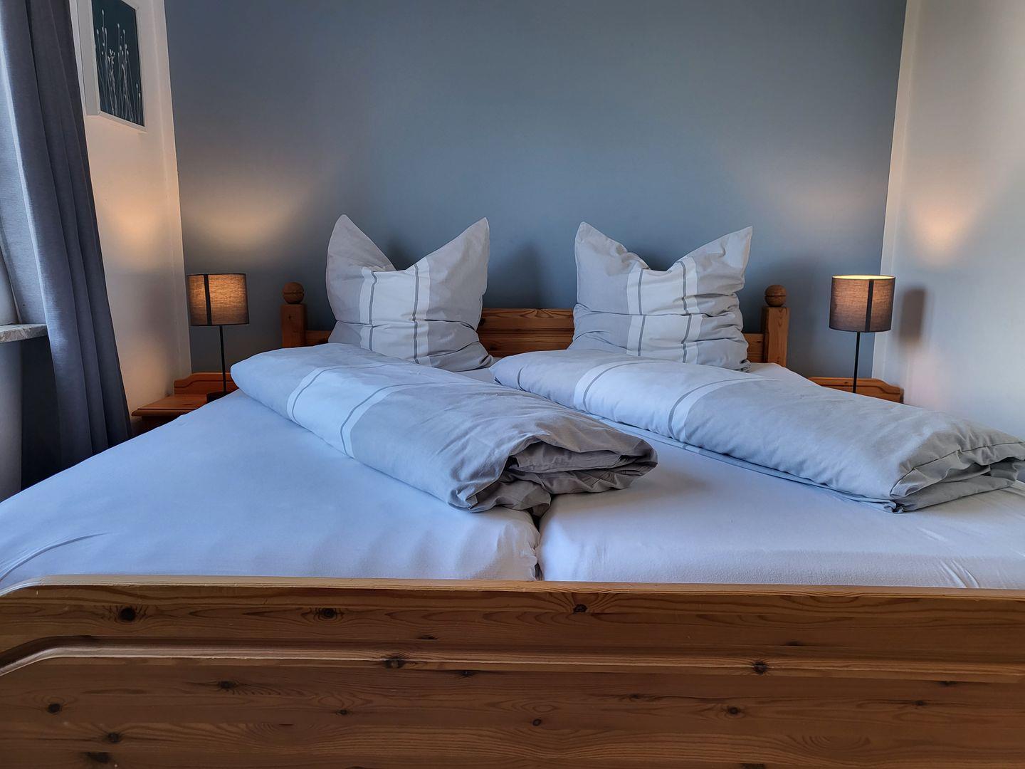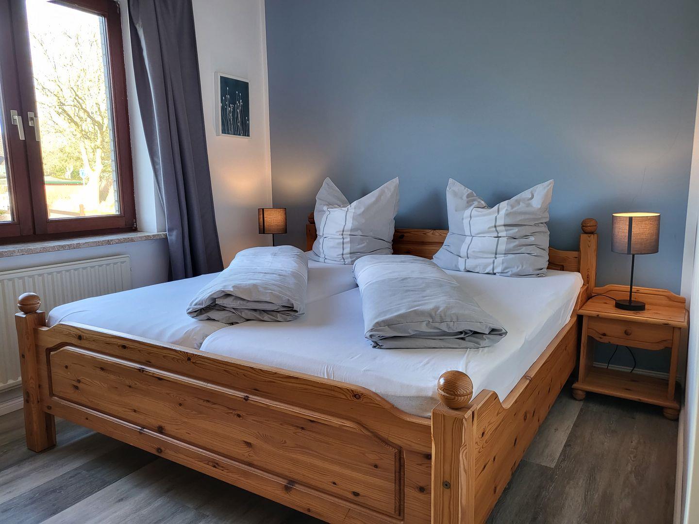 Separates Schlafzimmer mit Doppelbett, Duschbad mit WC.