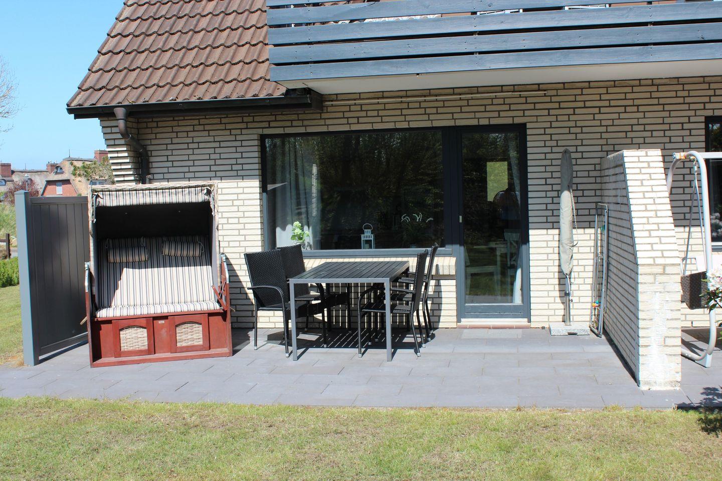 In der Saison steht hier ein typisch norddeutscher Strandkorb zur Verfügung. Bis zu 4 Personen verbringen hier einen wunderbaren Urlaub in St. Peter Ording.