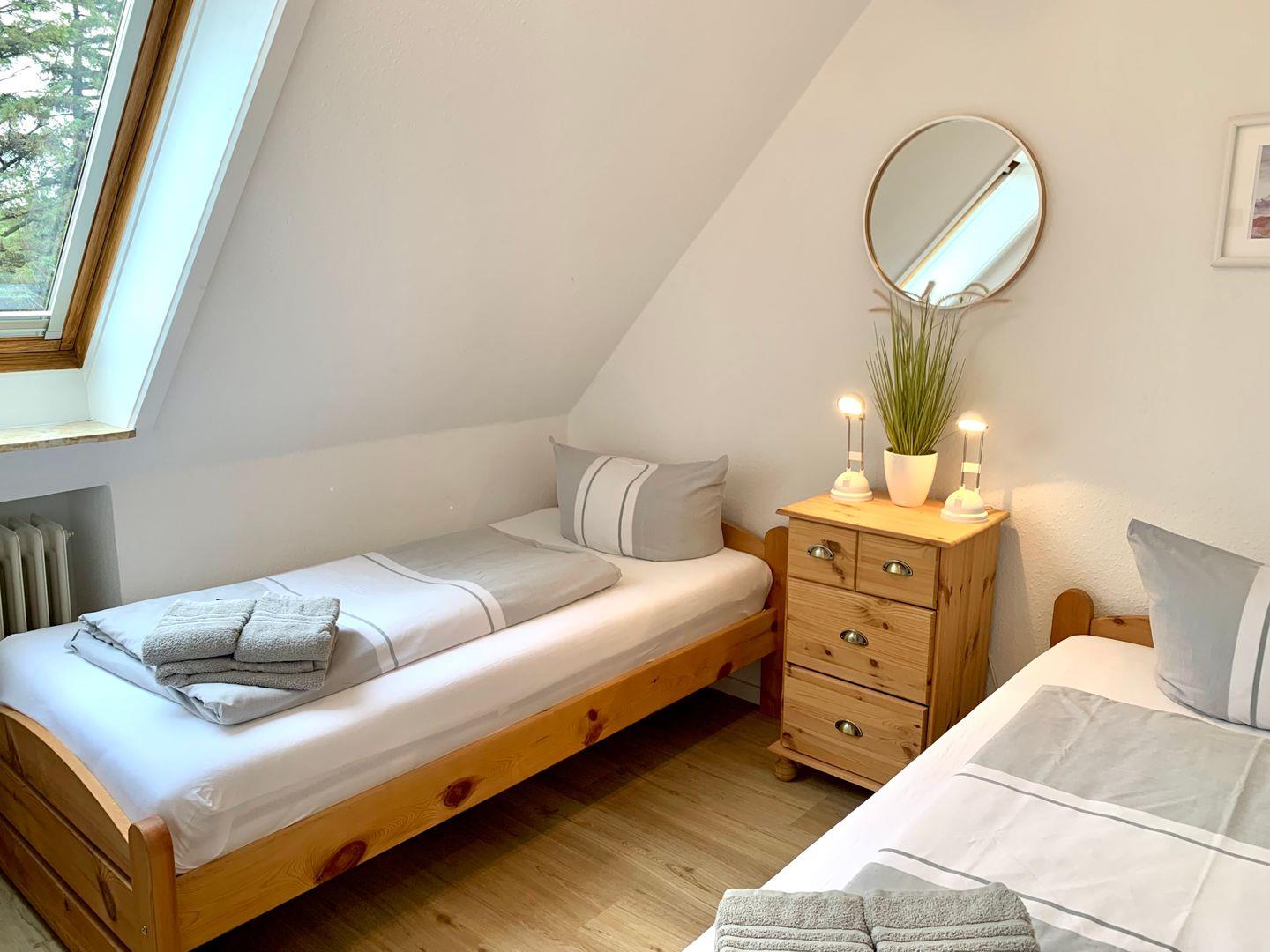 Im separaten Schlafzimmer stehen zwei Einzelbetten zur Verfügung.