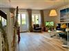 Die sehr moderne 3-Zimmer Ferienwohnung erstreckt sich vom Erdgeschoss aus auf 2 Ebenen und bietet auf großzügigen 111m² Platz für bis zu 6 Personen. Durch Lage und Ausstattung eignet sich die Ferienwohnung auch besonders für den Familienurlaub, Kinder sind hier herzlich willkommen. Auch der Urlaub mit Hund in St. Peter Ording ist hier auf Anfrage möglich. Zur Ferienwohnung gehört eine möblierte Terrasse, in der Saison steht hier ein typisch norddeutscher Strandkorb zur Verfügung. Durch den Übergang zur möblierten Terrasse wirkt der moderne Wohnraum wunderbar hell und einladend. Dort gehört eine Sitzgruppe aus edlen Ledermöbeln zur Einrichtung. Am großen Esstisch findet die gesamte Familie Platz, für die multimediale Unterhaltung sorgen Flachbild-TV und kostenfreies W-LAN. Eine hochwertige Bluetooth-Box ist vorhanden. Der edle Fußboden aus Eichenholz überstreicht das besondere Flair der Ferienwohnung.