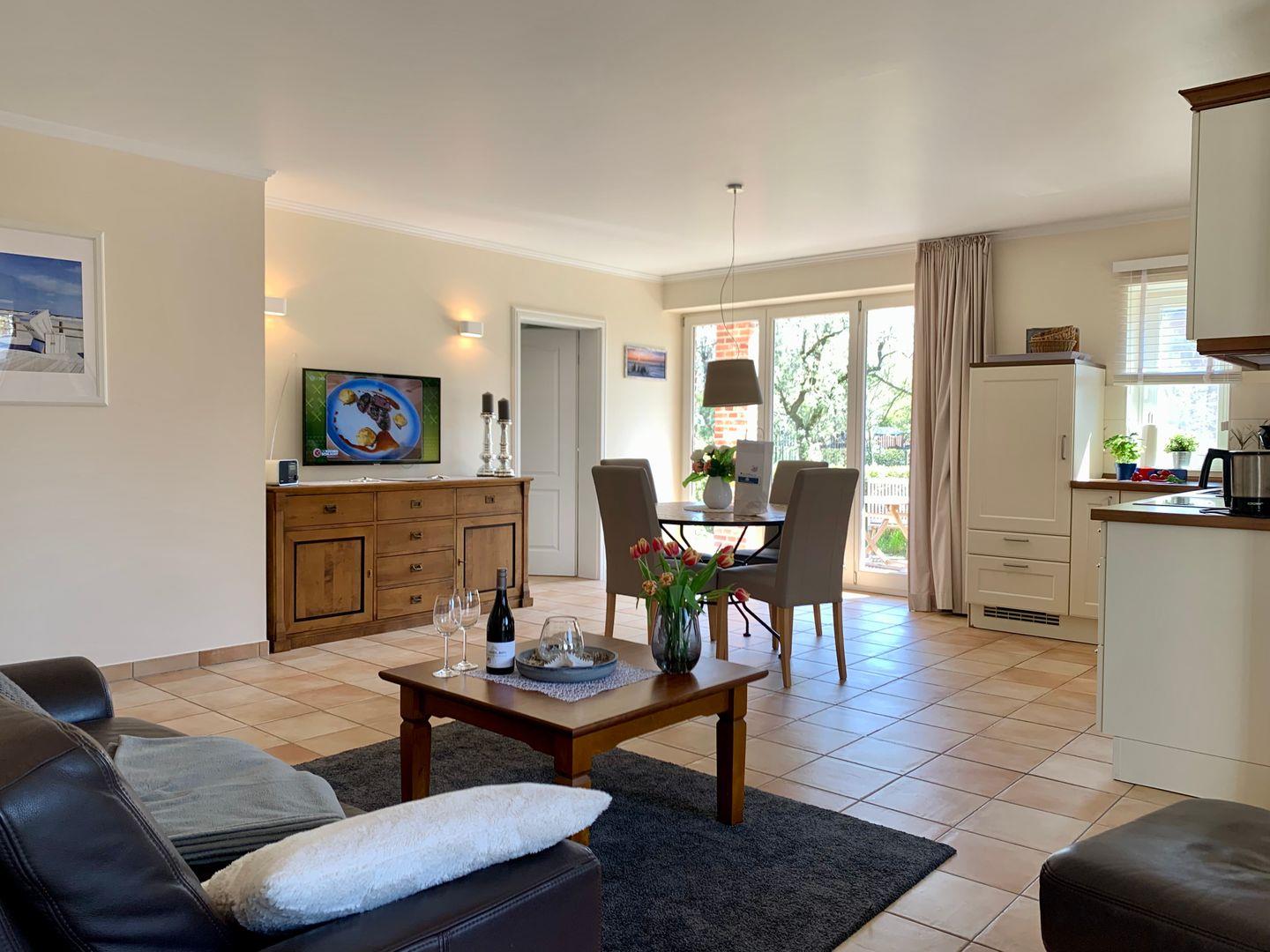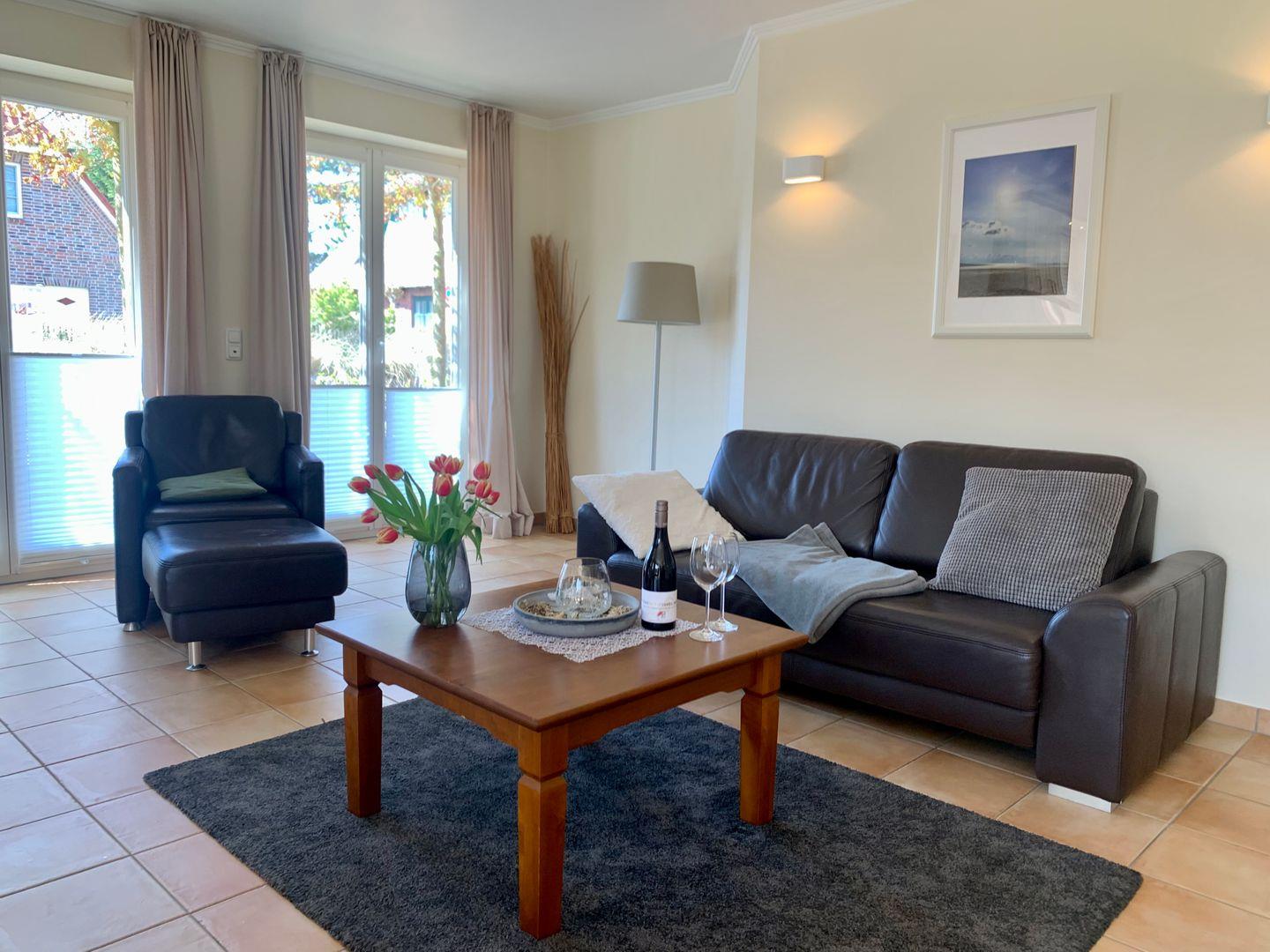 Die 68m² große 3-Zimmer Ferienwohnung liegt im Erdgeschoss und bietet bis zu 3 Personen Platz für einen wunderbaren Urlaub in St. Peter Ording.