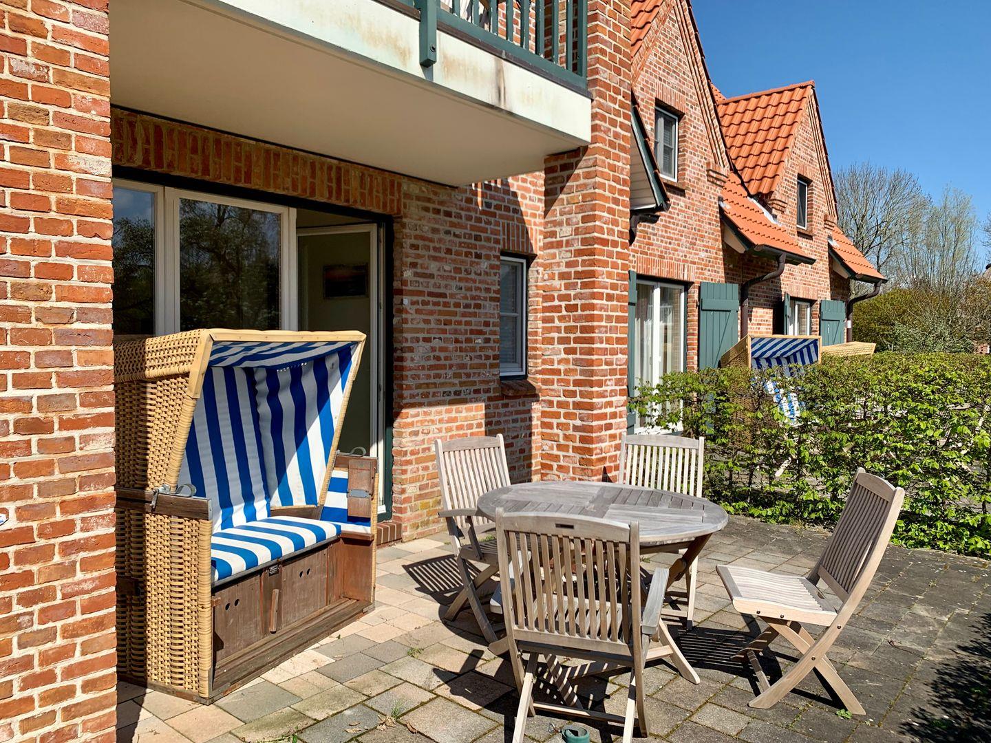 Zur Ferienwohnung gehört eine möblierte Terrasse.