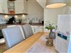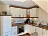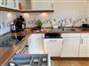 Die integrierte Küche ist modern und umfangreich ausgestattet, unter anderem sind Cerankochfeld und Backofen, Kühlschrank mit Gefrierfach sowie Geschirrspüler und Kaffeemaschine vorhanden.