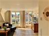 Durch den Übergang zum Balkon wirkt das modern und einladend eingerichtete Wohnzimmer wunderbar hell. Hier gehört eine edle Sitzgruppe, bestehend aus edler Ledercouch und einem gemütlichen Ledersessel, zur Ausstattung. Am Esstisch nimmt die gesamte Familie Platz, für die multimediale Unterhaltung sorgen ein großer Flachbild-TV und kostenfreies W-LAN.