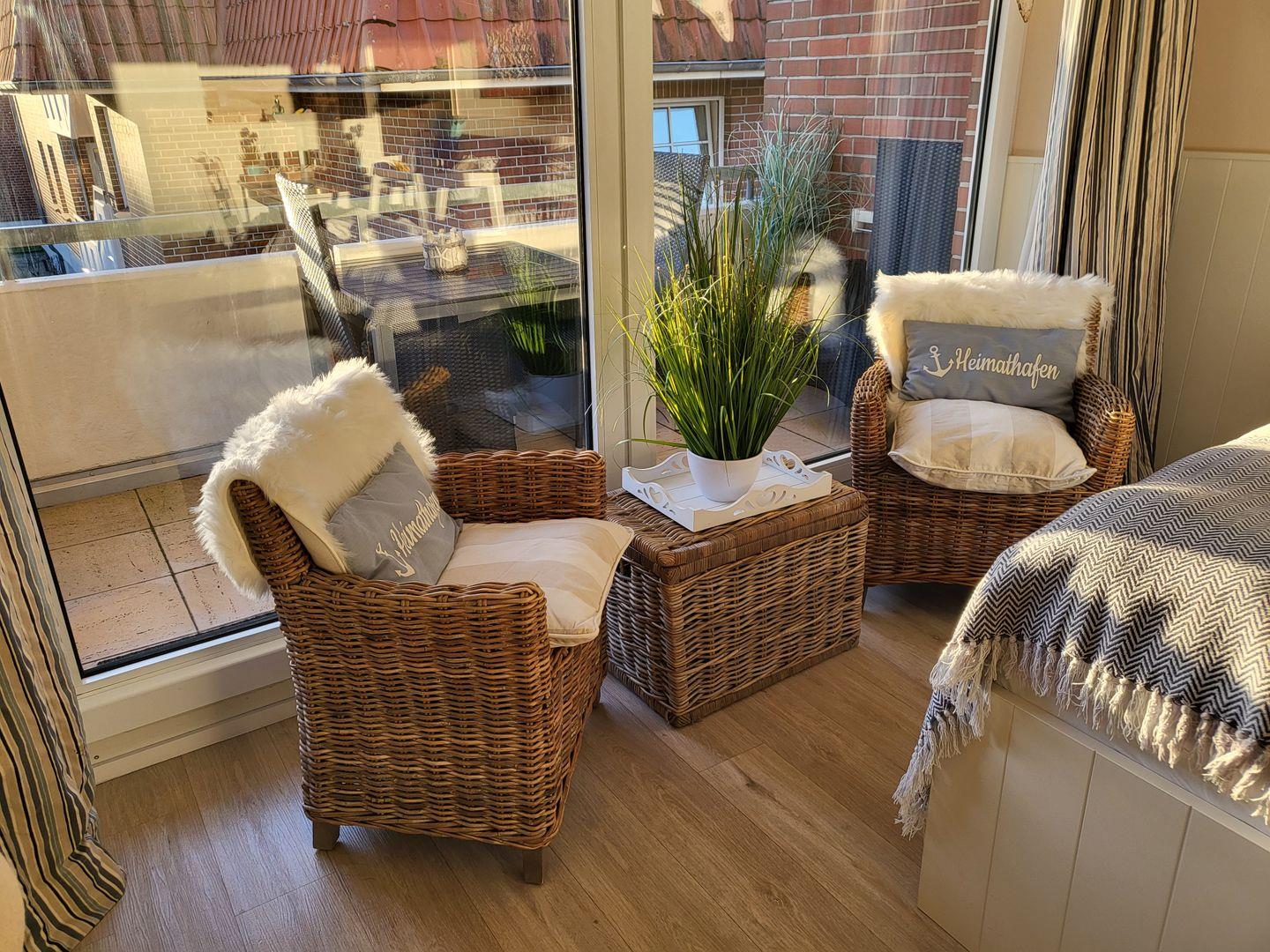 Durch den Übergang zum Balkon und die große Fensterfront wirkt das kombinierte Wohn- und Schlafzimmer wunderbar hell und einladend. Zum maritim und liebevoll eingerichteten Raum gehört ein sehr komfortables 180x200cm Boxspringbett. Von dort schweift der Blick auf den großen Flachbild-TV. Kostenfreies W-LAN ist vorhanden und rundet das Unterhaltungsprogramm der zentral gelegenen Ferienwohnung in St. Peter Ording ab.