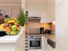 Am edlen Esstisch nimmt die ganze Familie Platz, aus der angrenzenden offenen Küche wird das Essen gereicht. Zur hochwertigen Küchenausstattung gehören unter anderem Cerankochfeld und Backofen, ein Kühlschrank mit Gefrierfach sowie Geschirrspüler, Kaffeemaschine und Mikrowelle.