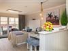 Wohnraum mit integrierte Küchenzeile sowie Doppel-Boxspringbett, ein separates Schalfzimmer mit 2 Doppelbetten, Duschbad mit WC.