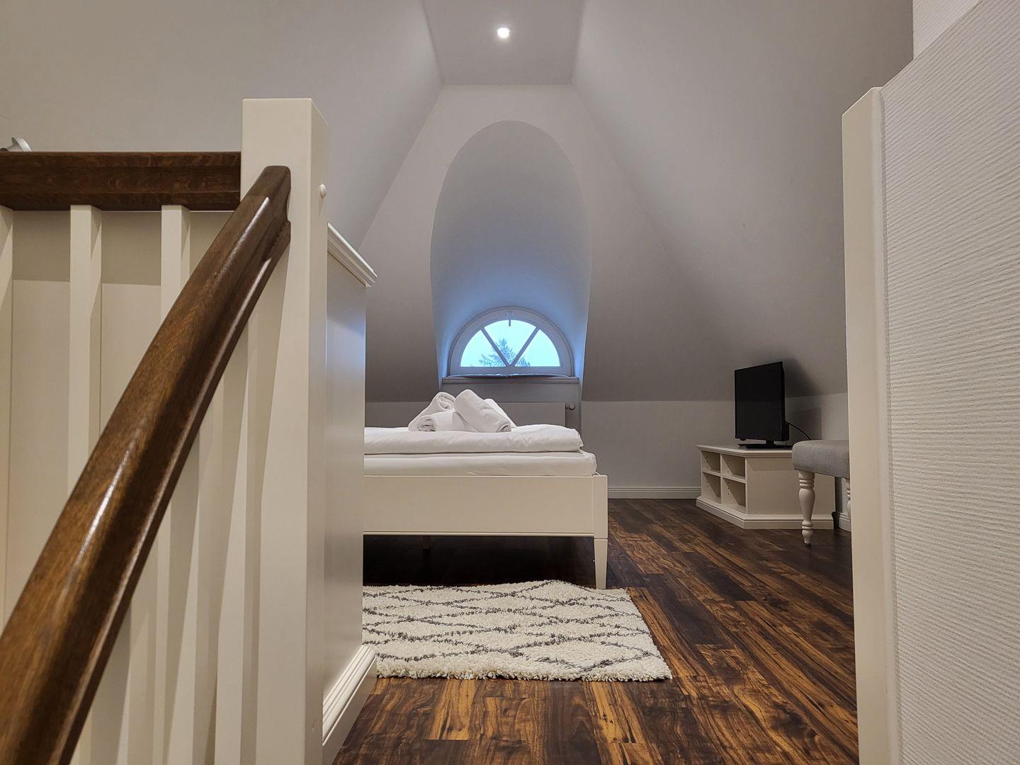 Eines befindet sich ebenfalls im Oberschoss, ein weiteres mit offener Gallerie zum Wohnungsflur, ist im Dachgeschoss gelegen.
