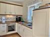 Die integrierte Küche ist modern und umfangreich ausgestattet, unter anderem sind Cerankochfeld und Backofen, Kühlschrank mit Gefrierfach sowie Geschirrspüler und Kaffeemaschine vorhanden.