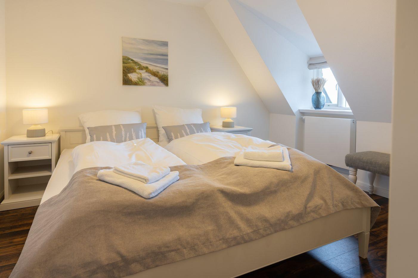 Die sehr moderne 3-Zimmer Ferienwohnung befindet sich im Obergeschoss und bietet auf 71m² Platz für bis zu 4 Personen und Kleinkind. Durch Lage und Ausstattung eignet sich die Ferienwohnung für den Familienurlaub, Kinder sind hier herzlich willkommen. Zur Ferienwohnung gehört eine edle, möblierte Loggia, die bei gutem Wetter freie Sicht bis hin zum Westerhever Leuchtturm bietet.
