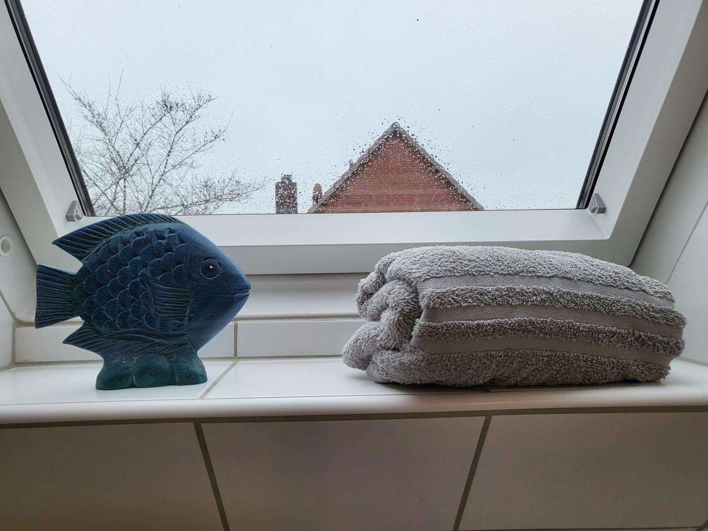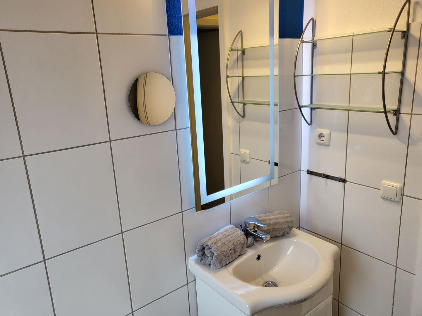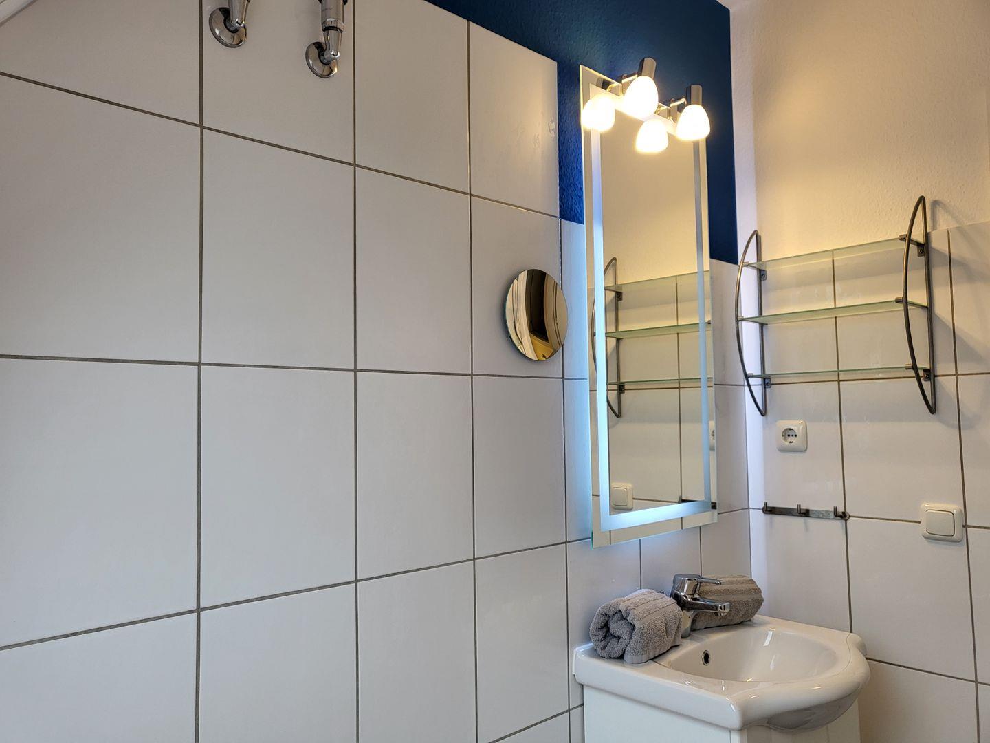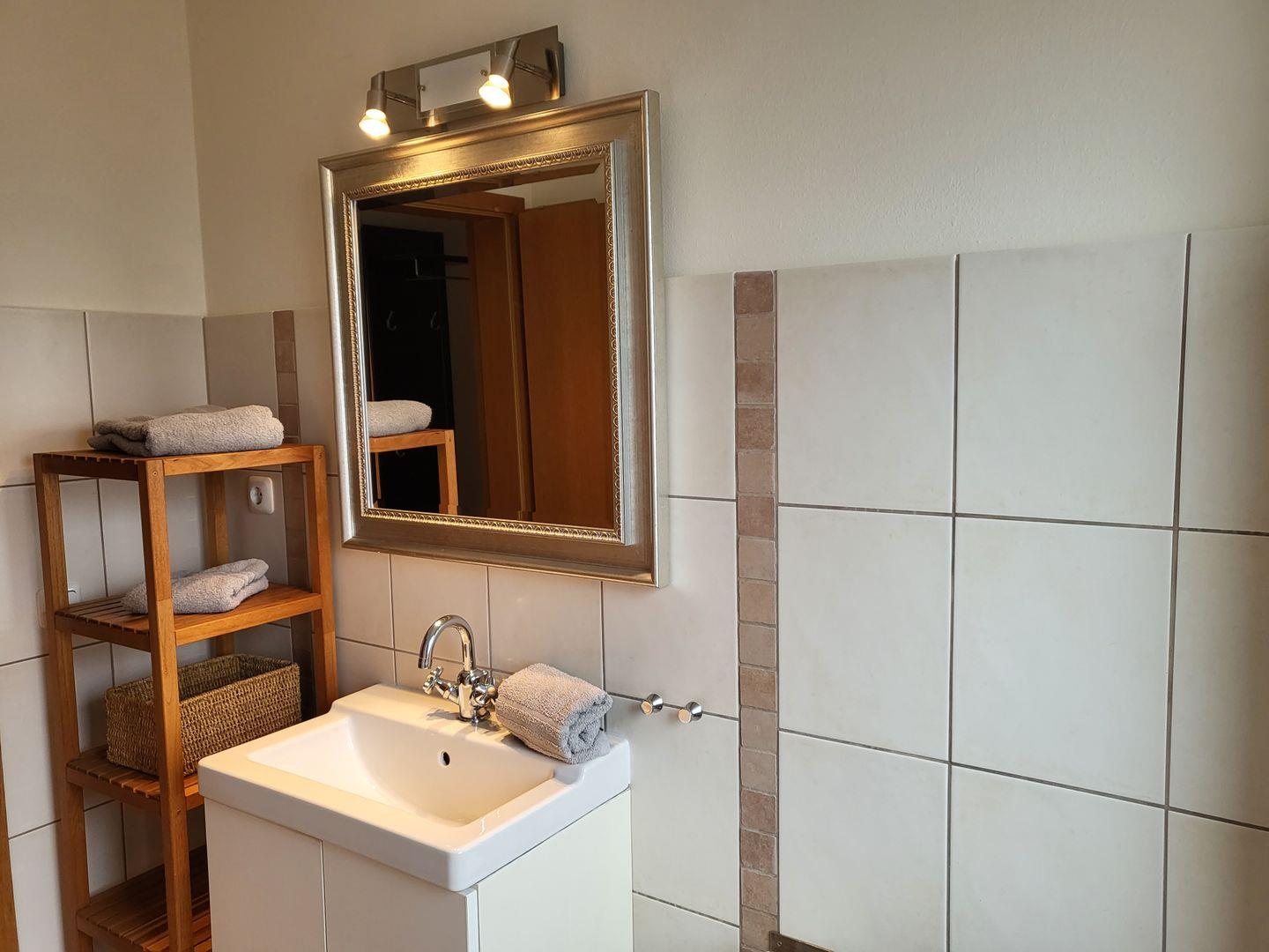 Ein Wannenbad mit WC is auf der Etage.