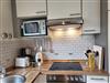 In den Raum integriert liegt die gut ausgestattete Küche des Ferienhauses, hier stehen unter anderem Cerankochfeld und Backofen sowie Kühlschrank mit Gefrierfach, ein Geschirrspüler sowie Kaffeemaschine zur Verfügung.