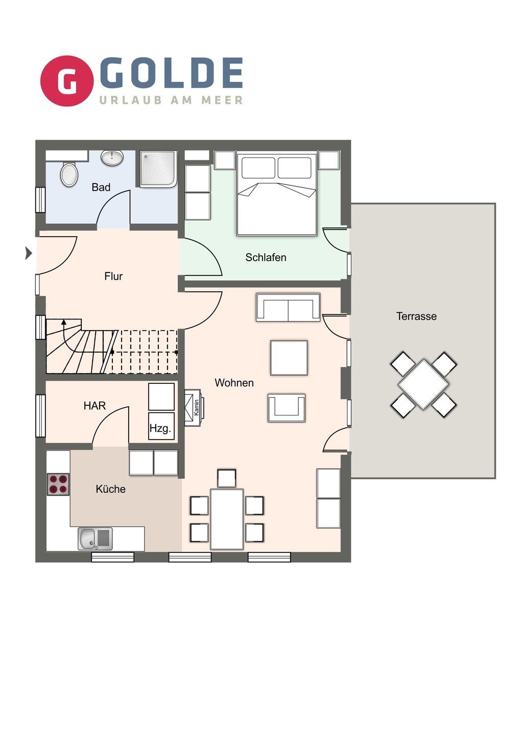 Die wunderschöne Haushälfte unter Reet verfügt über ca. 100 m² Wohnfläche und bietet Platz für 6 Personen.