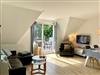 Moderne 3-Zimmer Ferienwohnung mit Südbalkon und Gemeinschaftsgarten. Wohnzimmer mit integrierter Küche, 2 Schlafzimmer je mit Doppelbetten und einem Einzelbett, Duschbad mit WC, Gemeinschaftsgarten,