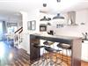 Die angrenzende, offene Küche ist vollumfassend ausgestattet. Hier gehören unter anderem Cerankochfeld und Backofen, ein großer Kühlschrank mit Gefrierfach sowie Geschirrspüler und Mikrowelle zur Ausstattung. Eine Kaffeemaschine für klassischen Filterkaffe ist ebenso vorhanden wie eine NESCAFÉ Dolce Gusto Kapselmaschine. Ein Tresen mit 4 Barhockern sorgt für ein besonders einladendes Feeling. Im Erdgeschoss ist weiterhin ein modernes Gäste-WC vorhanden.