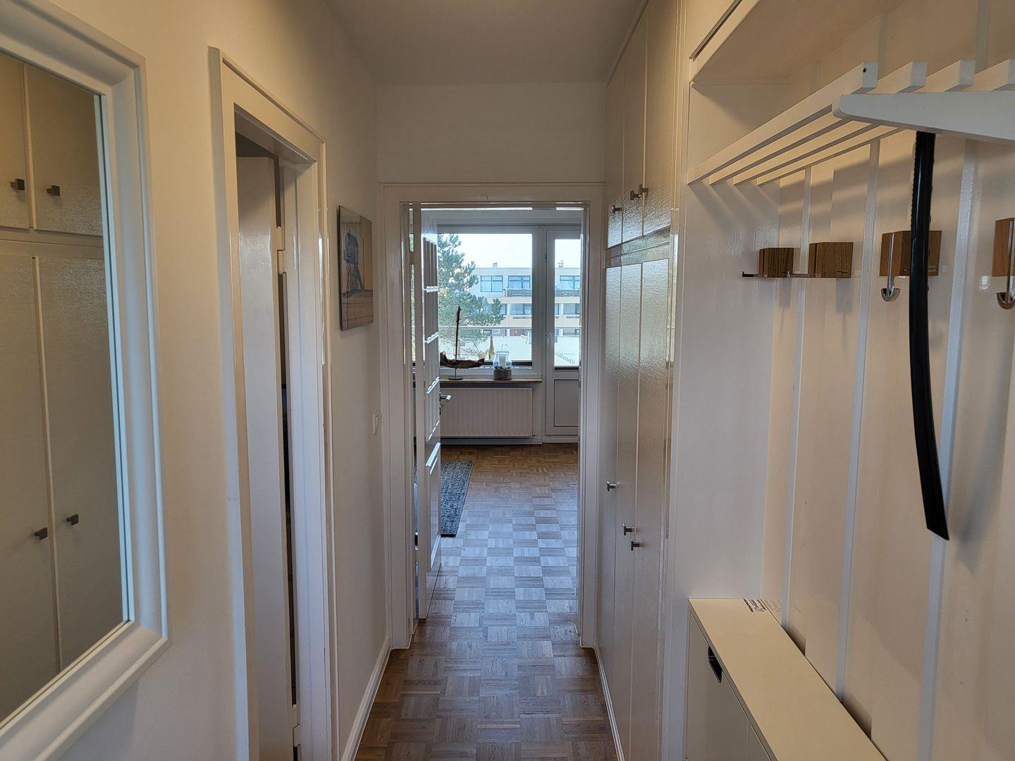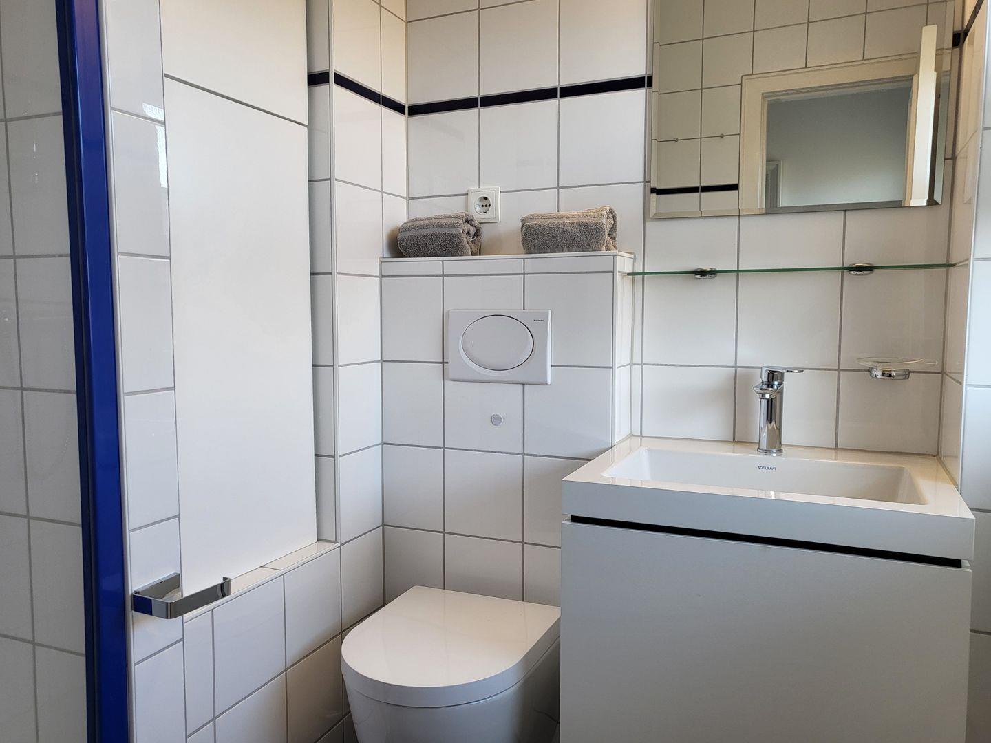 Im Flur verspricht ein geräumiger Einbauschrank viel Stauraum für Gepäck, Mitbringsel und Andenken an den Urlaub in St. Peter Ording. Zum Feriendomizil gehört ein helles Duschbad mit WC.