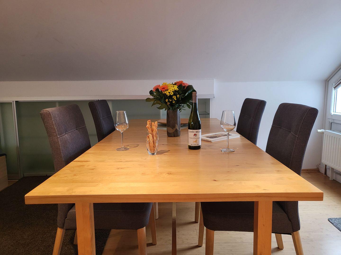 Die 100m² große Ferienwohnung Loreley 37 befindet sich in der 2. Etage des Hauses. Sie bietet 3-4 Personen eine moderne und geräumige Ferienunterkunft mitten im geliebten Kurzentrum Bad.