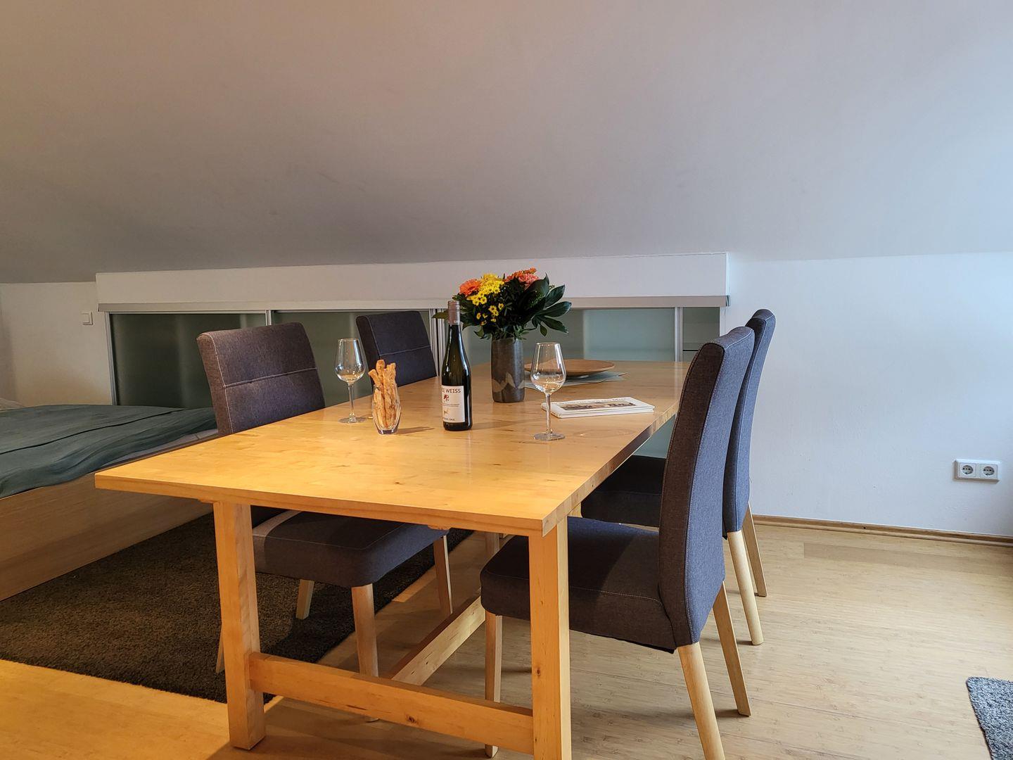 Laminatboden. Nichtraucher, ein kleiner Hund auf Anfrage. PKW-Stellplatz vorhanden.