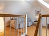 Auf der oberen Etage befinden sich das Duschbad und zwei wunderschöne Schlafzimmer. Von einem der Schlafzimmer aus haben Sie über eine weitere Treppe Zugang zum Dachzimmer, wo Sie einen eindrucksvollen Blick auf die atemberaubende Dünenlandschaft und das Meer genießen können. Hier können Sie auf einer gemütlichen Couch relaxen und ein gutes Buch lesen.