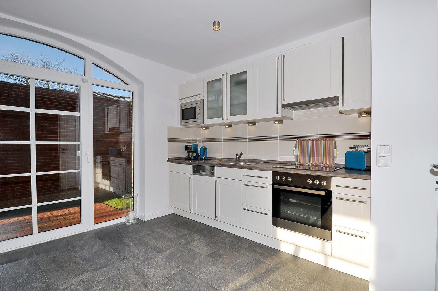 Auf den Terrassen stehen Gartenmöbel, Liegen und ein Strandkorb bereit. Im Haus sorgt eine Fußbodenheizung im Erd- und Obergeschoss für ein angenehmes Raumklima, zudem steht ein Telefon für kostenfreie Inlandsgespräche zur Verfügung.