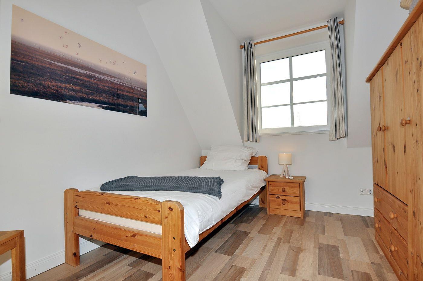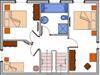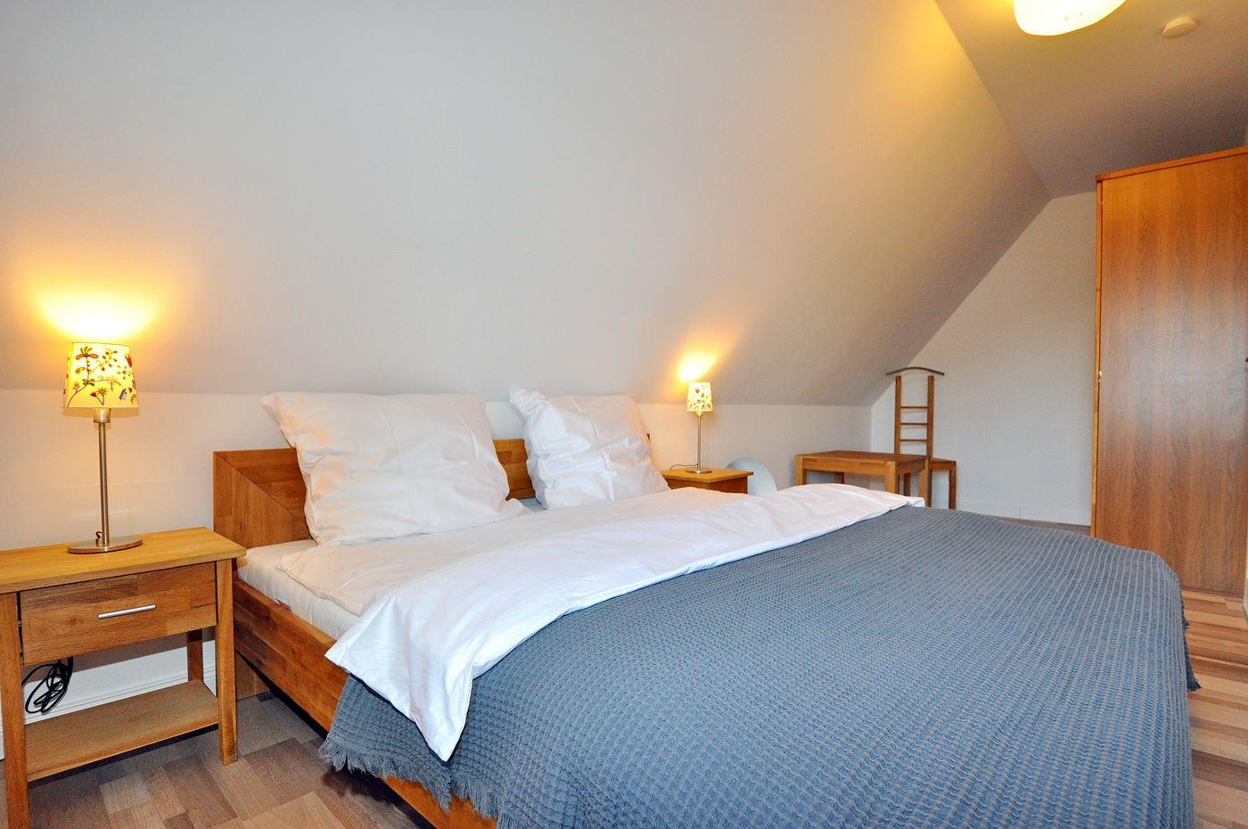 Obergeschoss: ein Schlafzimmer mit Doppelbett (180 x 200 cm - Matratzen erneuert im Herbst 2024), ein Schlafzimmer mit Einzelbett (140 x 200 cm - Matratzen erneuert im Herbst 2024), ein Schlafzimmer mit Einzelbett (100 x 200 cm), ein Wannenbad / WC mit separater Dusche