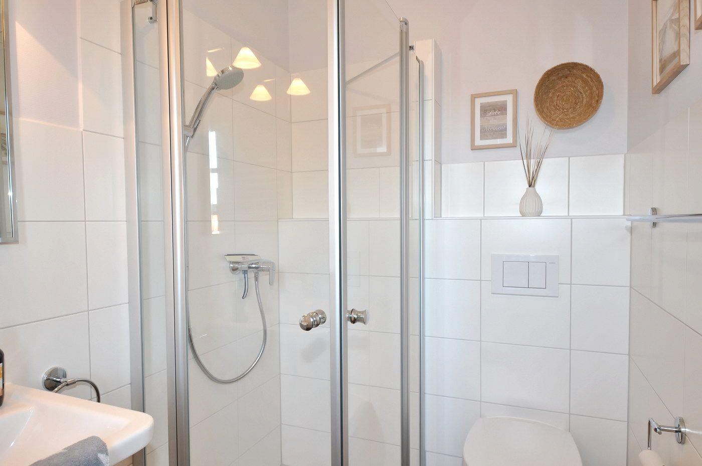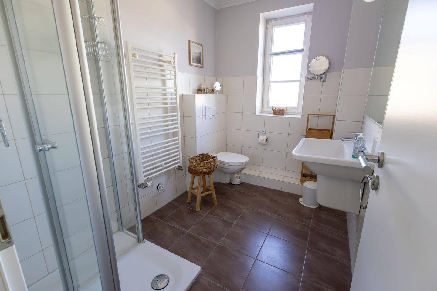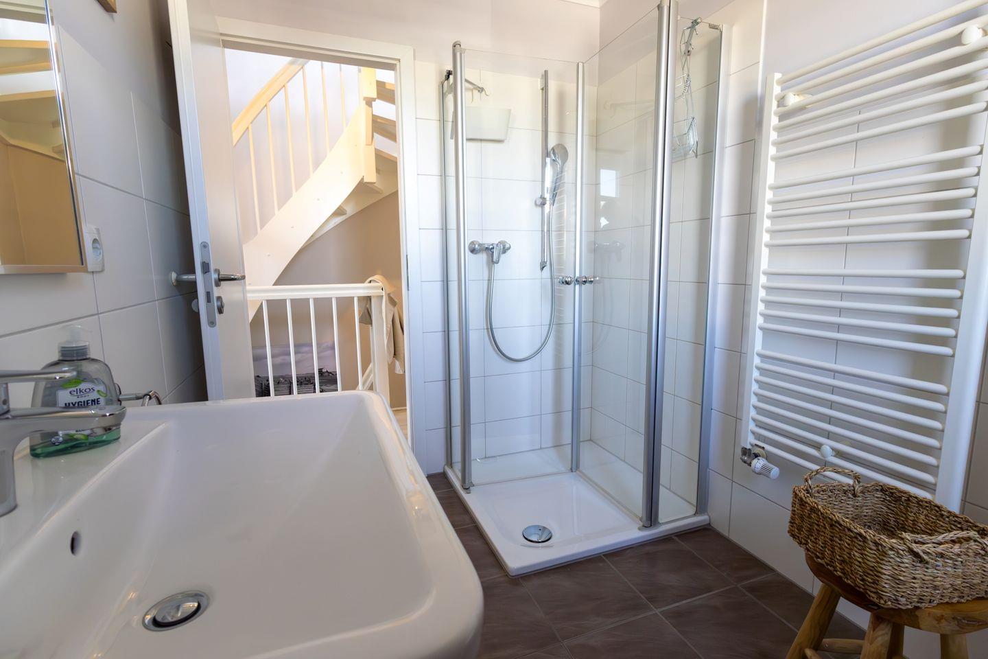 Obergeschoss: ein Schlafzimmer mit Doppelbett (160 x 200 cm) und TV, ein Schlafzimmer mit 2 Einzelbetten (je 100 x 200 cm), ein Duschbad / WC