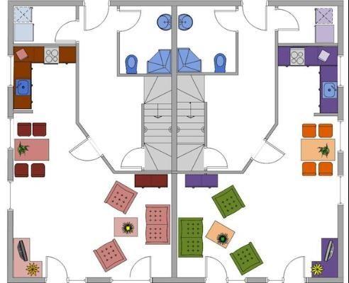 Jede Haushälfte umfasst ca. 100 m² Wohnfläche und teilt sich über 3 Ebenen wie folgt auf:
