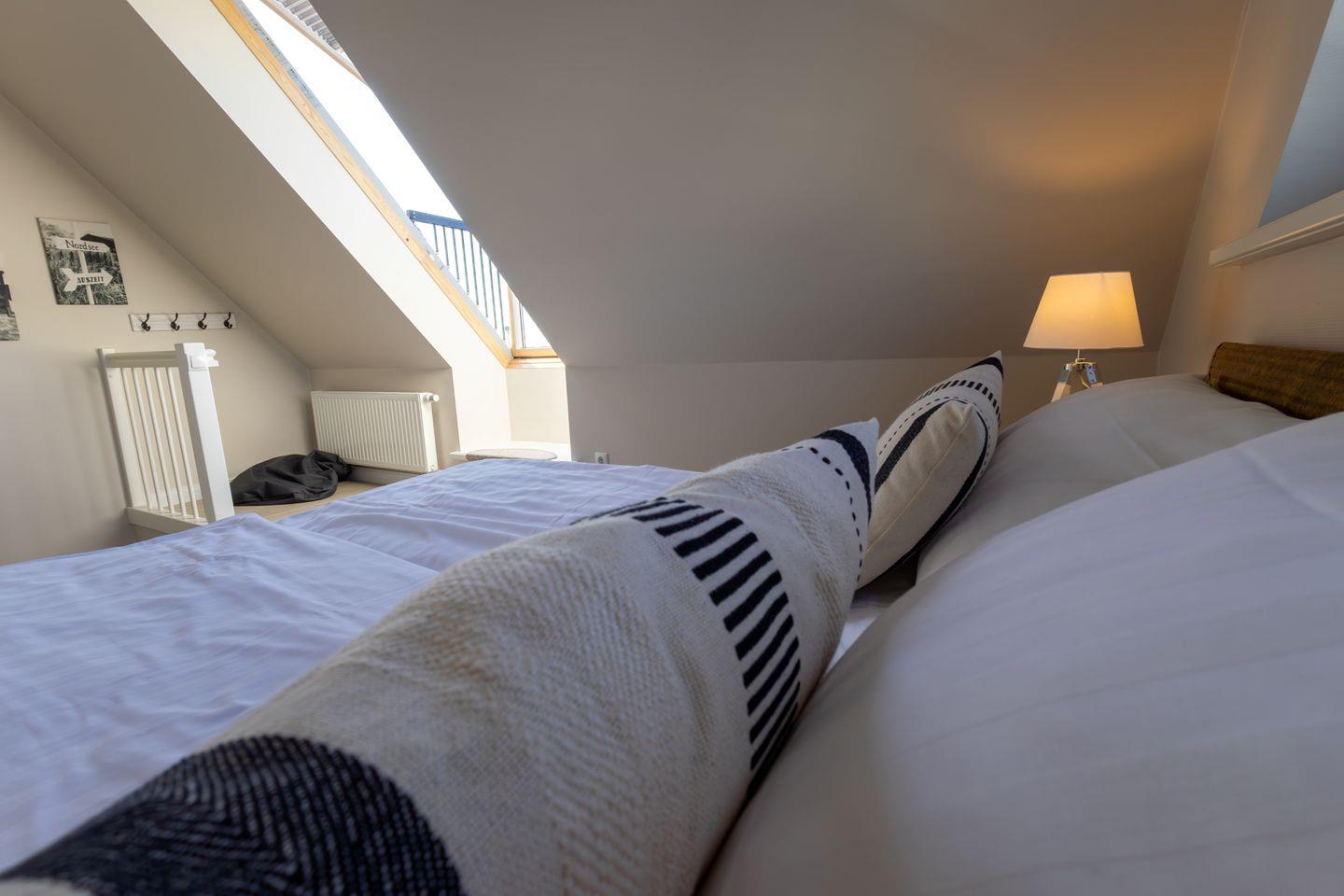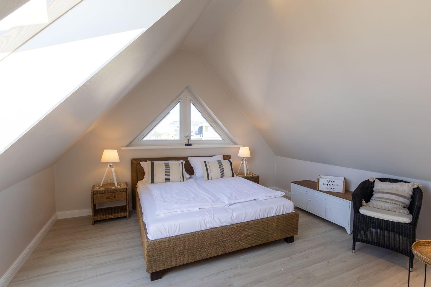 Dachgeschoss: ein Schlafzimmer mit Doppelbett (160 x 200 cm)
