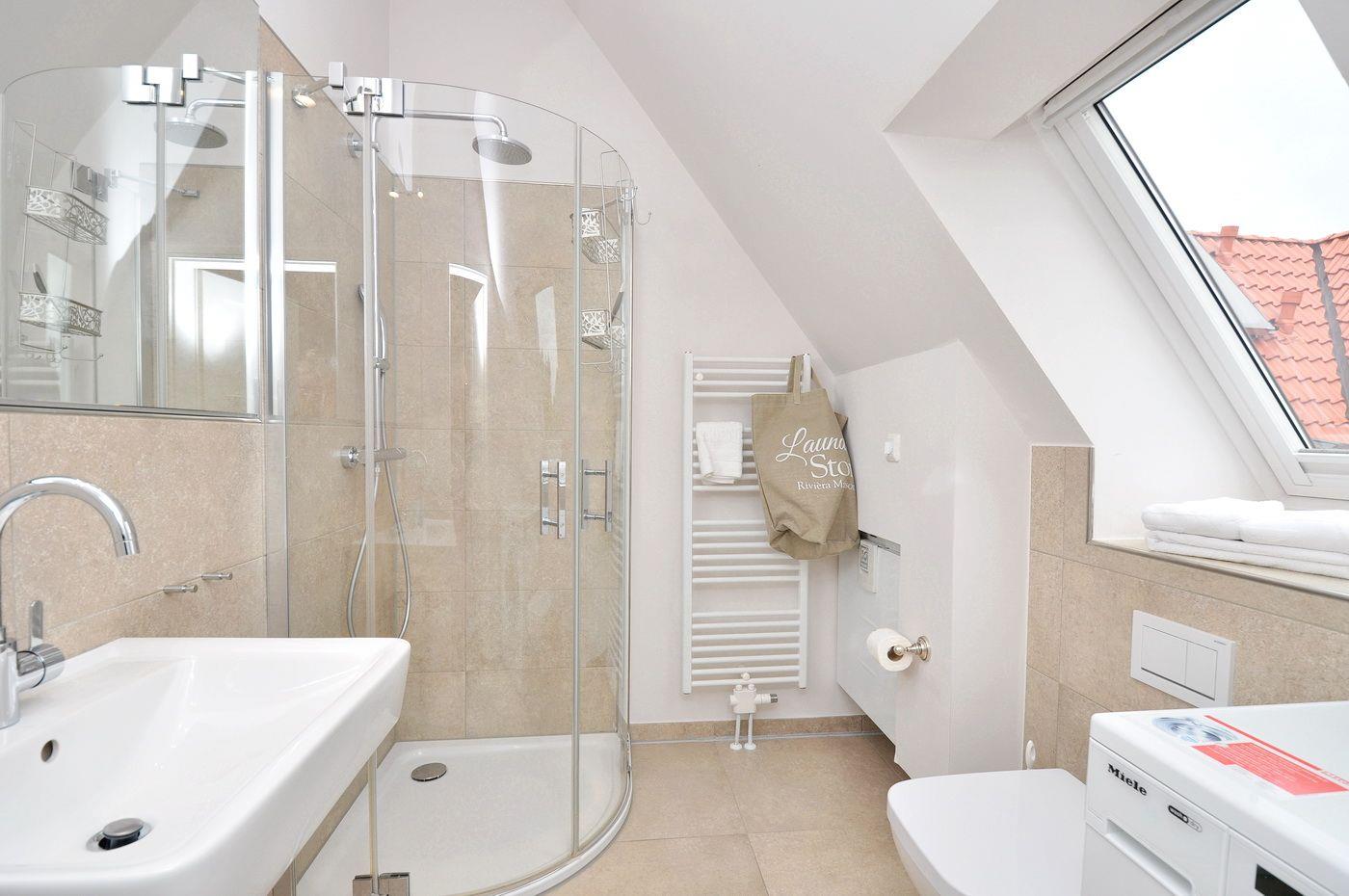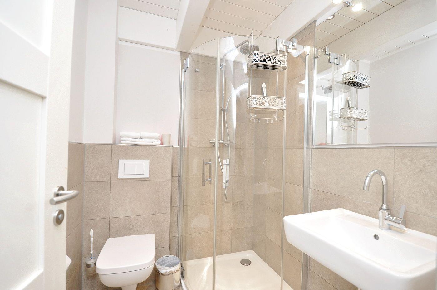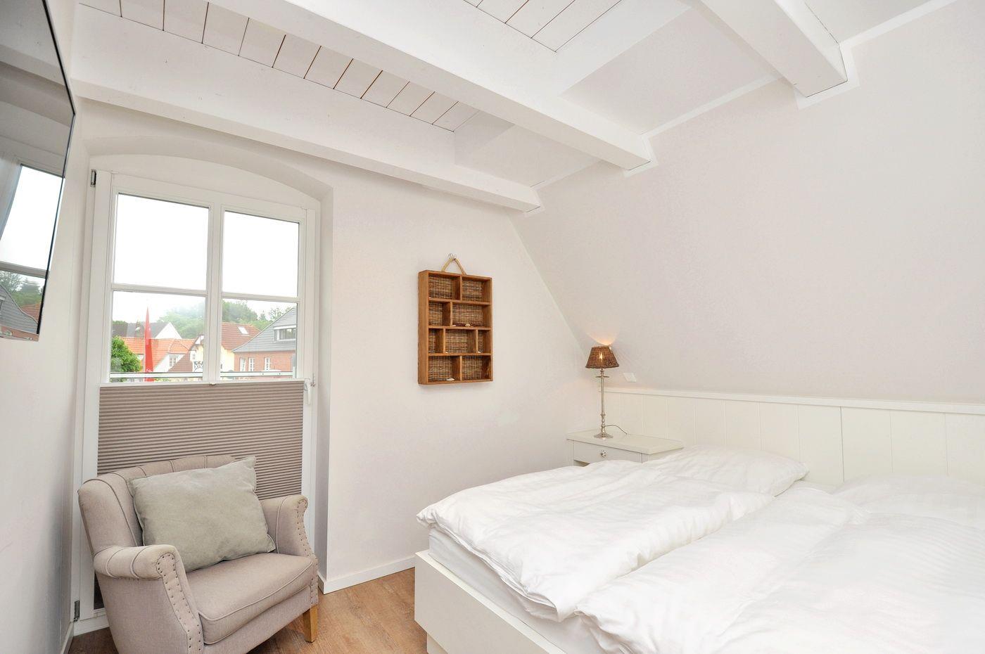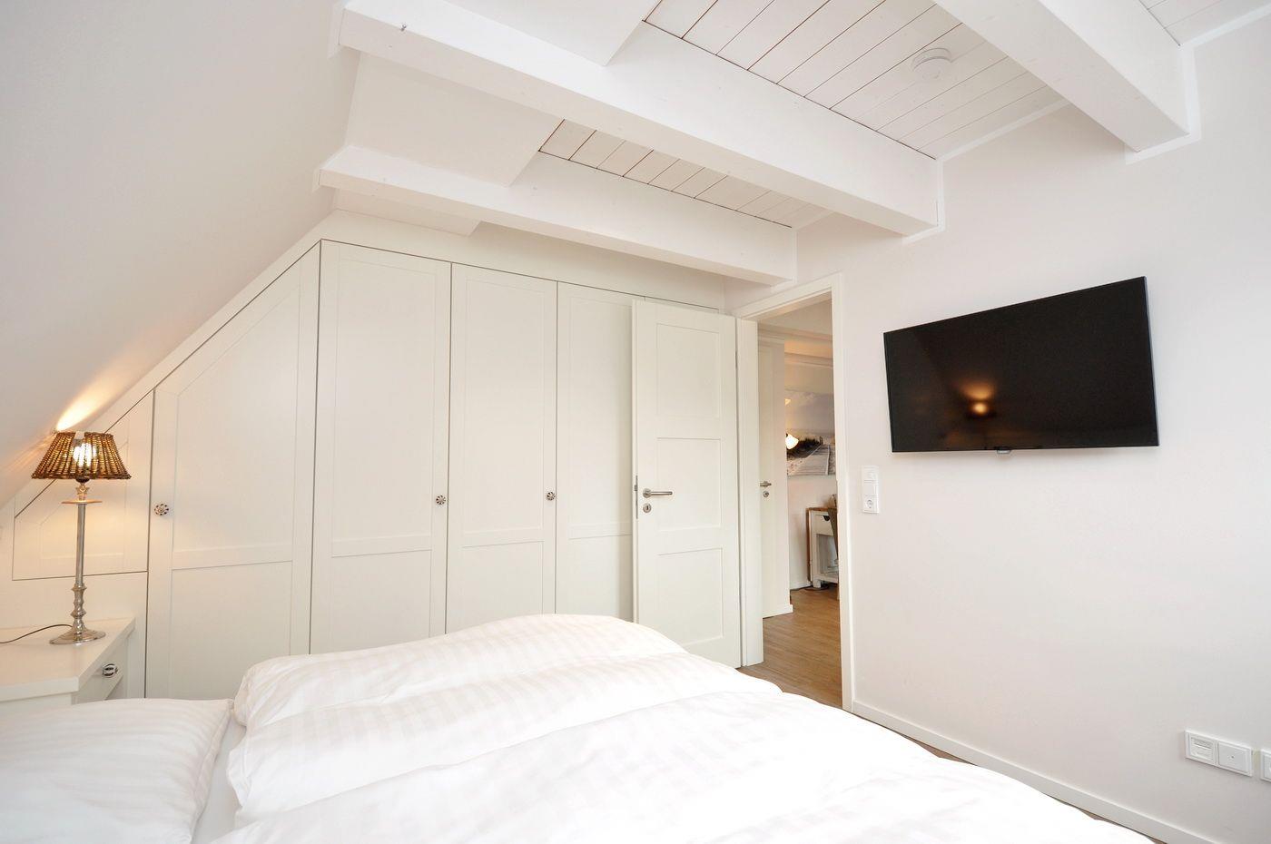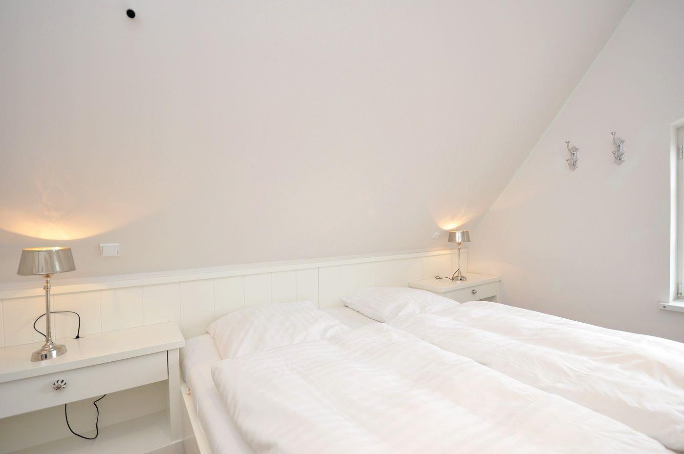 Dachgeschoss: ein Doppelschlafzimmer (180 x 200 cm) mit angegliedertem Duschbad / WC