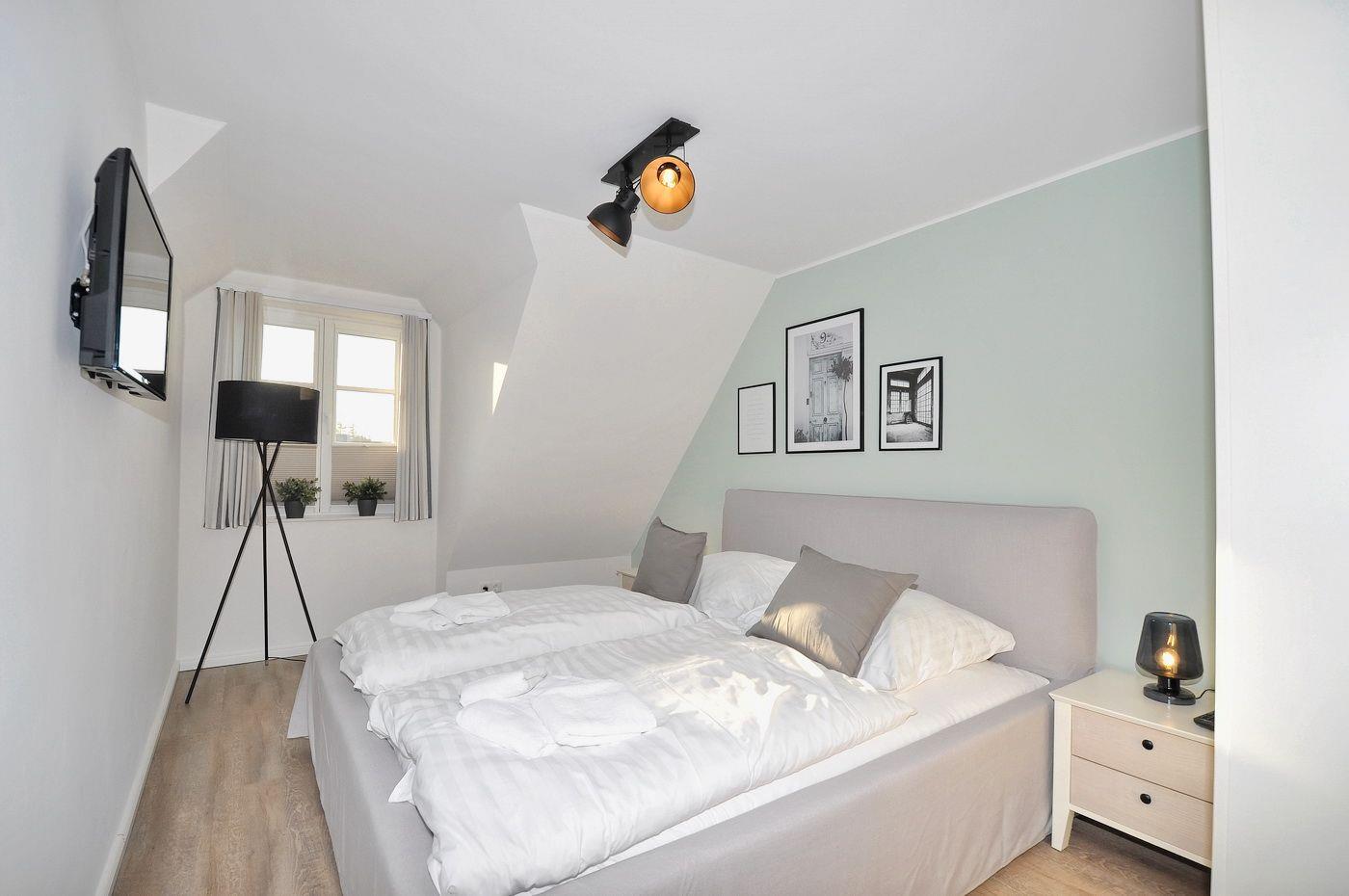 Dachgeschoss: ein Schlafzimmer mit 2 Einzelbetten (je 90 x 200 cm) und TV
