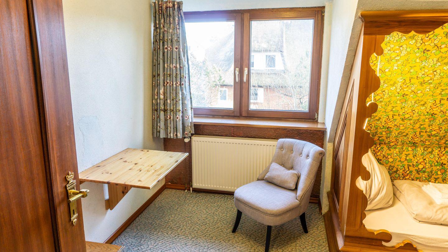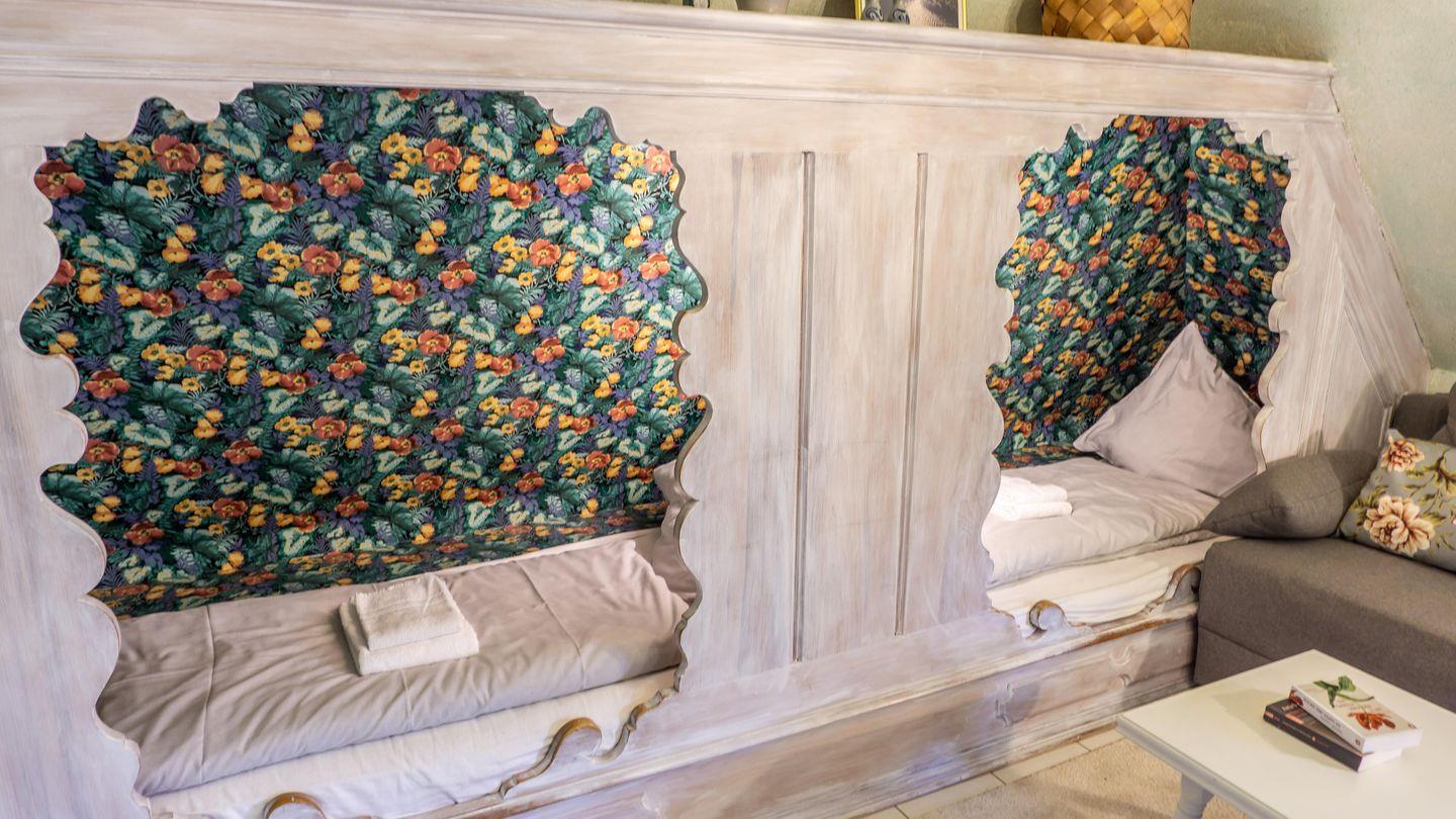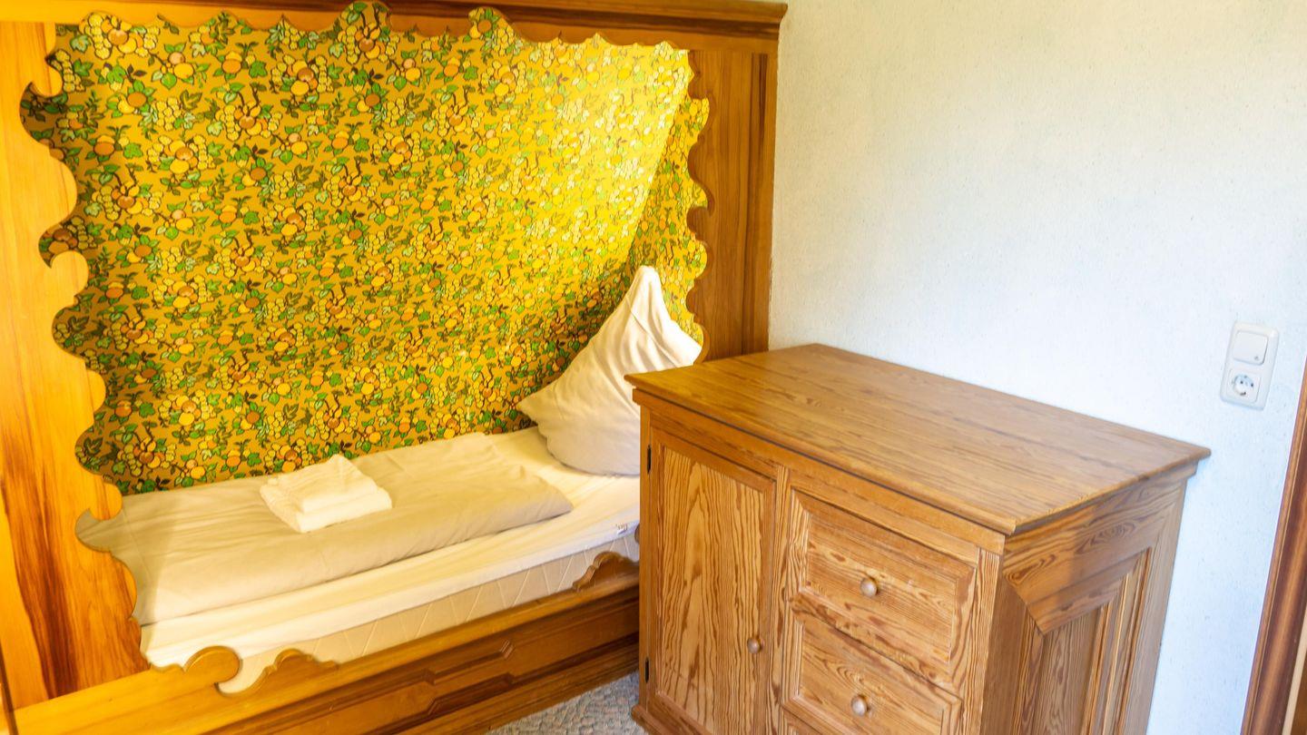 Schlafzimmer mit 2 Alkovenbetten (über Eck, 90 x 200 cm), Kommode