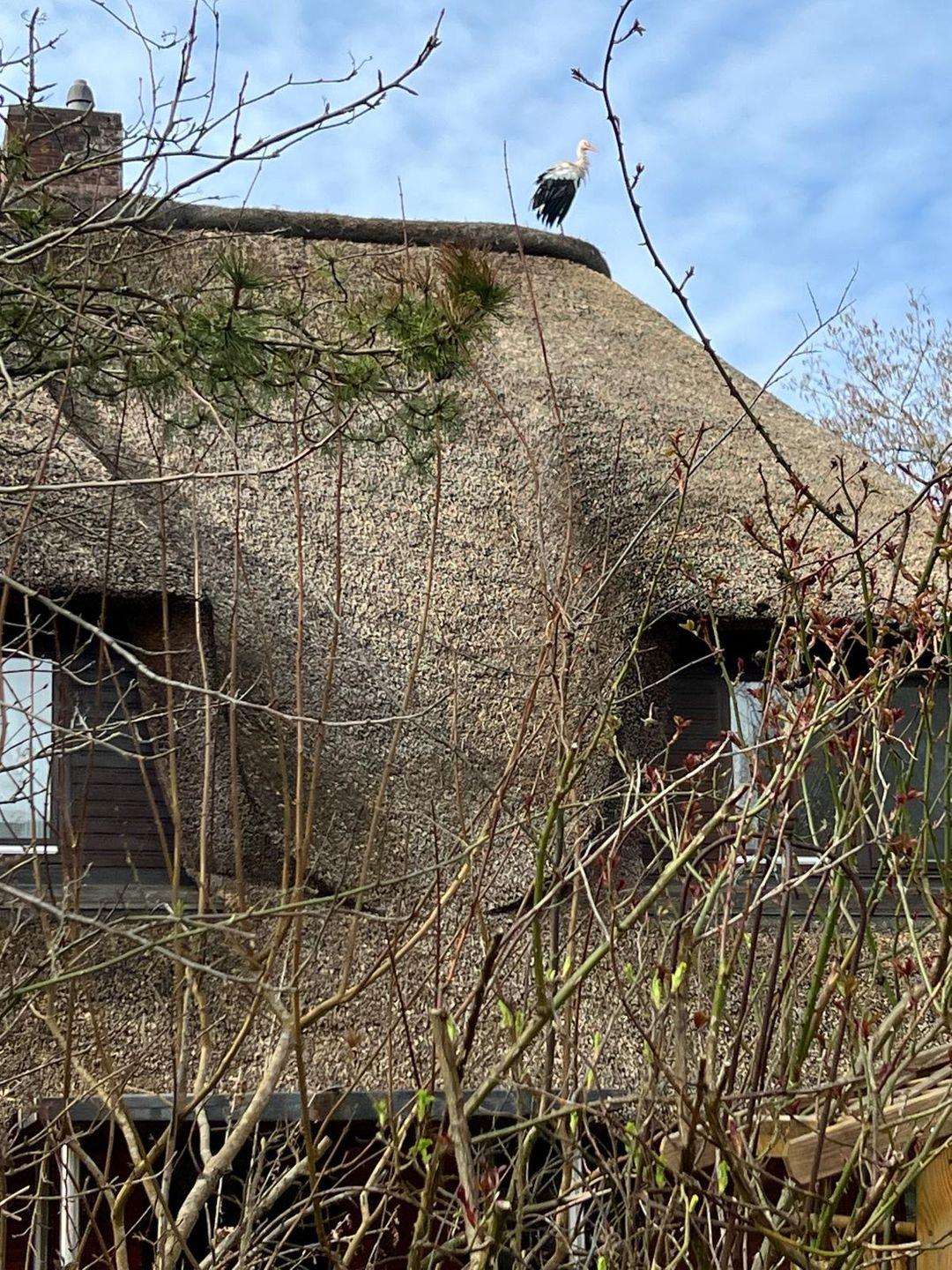 Hier können Sie Störche, Zugvögel, Graureiher, Sperber und andere Gartenvögel beobachten. Manchmal zeigen sich auch die Rehe.