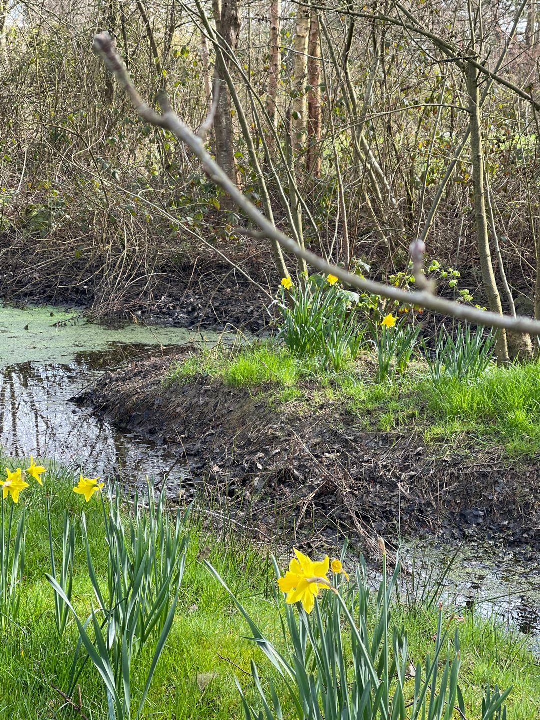 Zu Ostern blühen tausende Narzissen rund um das Haus herum.