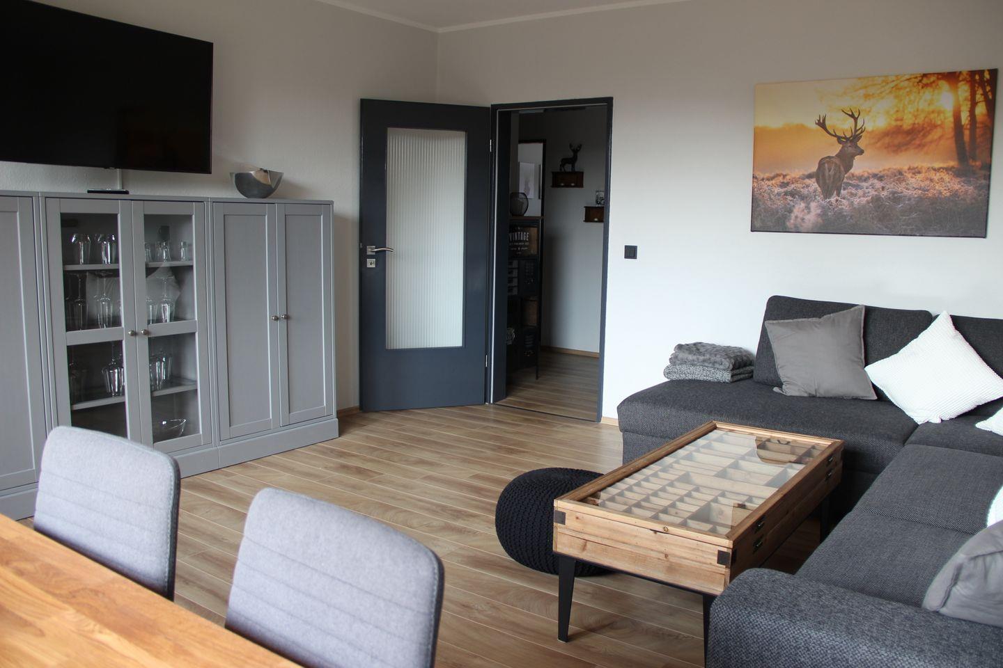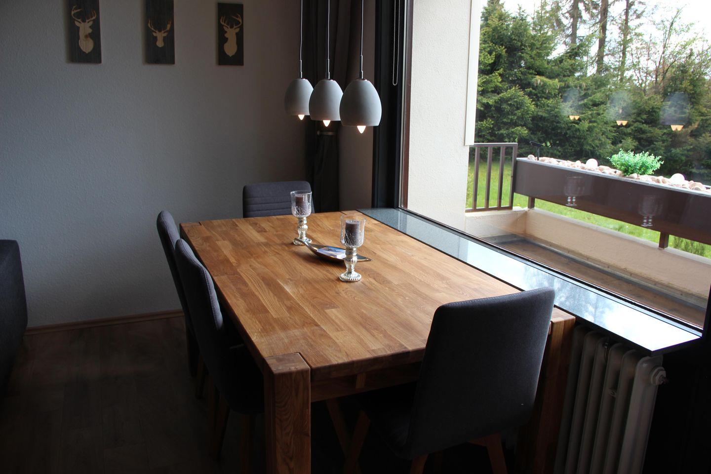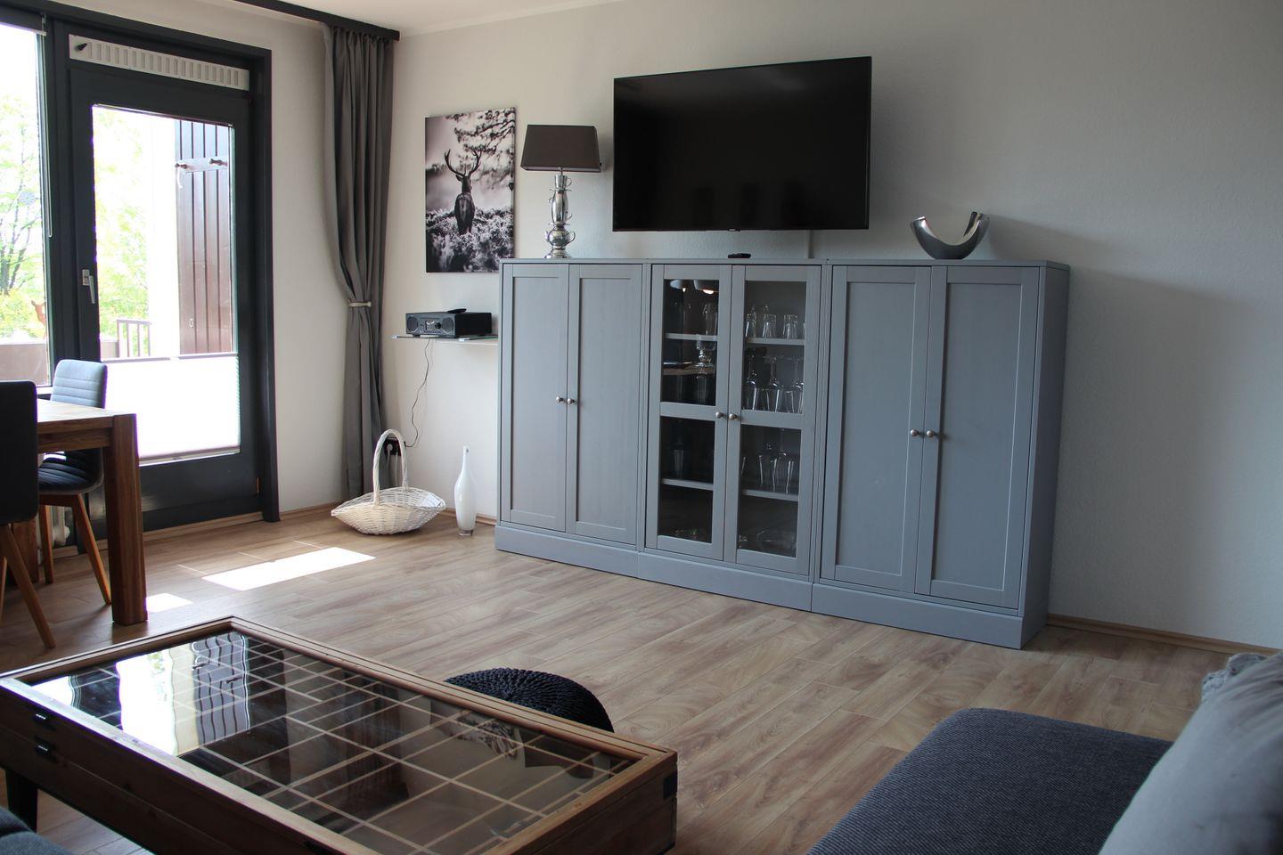 Das kombinierte Wohn-/Esszimmer ist ein einladender Ort, ausgestattet mit gemütlichen Möbeln. Ein bequemes Sofa lädt Dich ein, nach einem aktiven Tag im Harz zu entspannen. Große Fenster lassen viel Tageslicht herein und bieten Dir einen schönen Blick auf die Natur. Vom Wohnzimmer hast du Zugang zum möblierten Balkon. In der Küche findest Du alles, was Du brauchst, um Deine Mahlzeiten zuzubereiten: Herd, Backofen und Kühlschrank. Ein Kaffeevollautomat sorgt für einen guten Start in den Tag, und dank der Spülmaschine musst Du Dich um das Abwaschen nicht kümmern. Das moderne Badezimmer bietet eine geräumige ebenerdige Dusche, Waschbecken und WC.