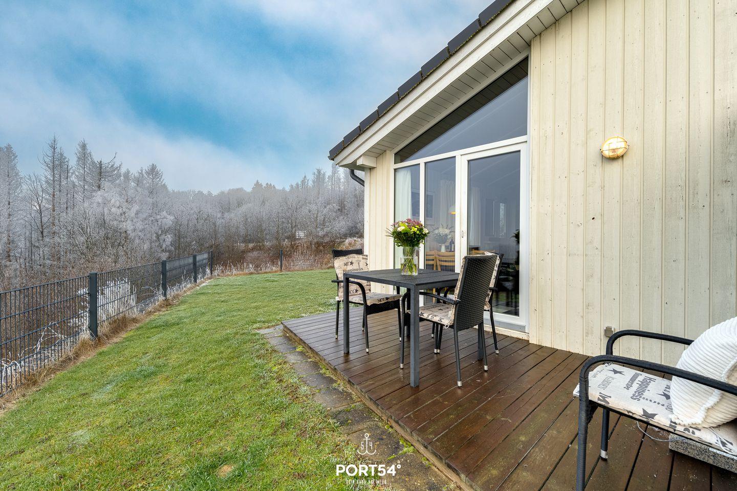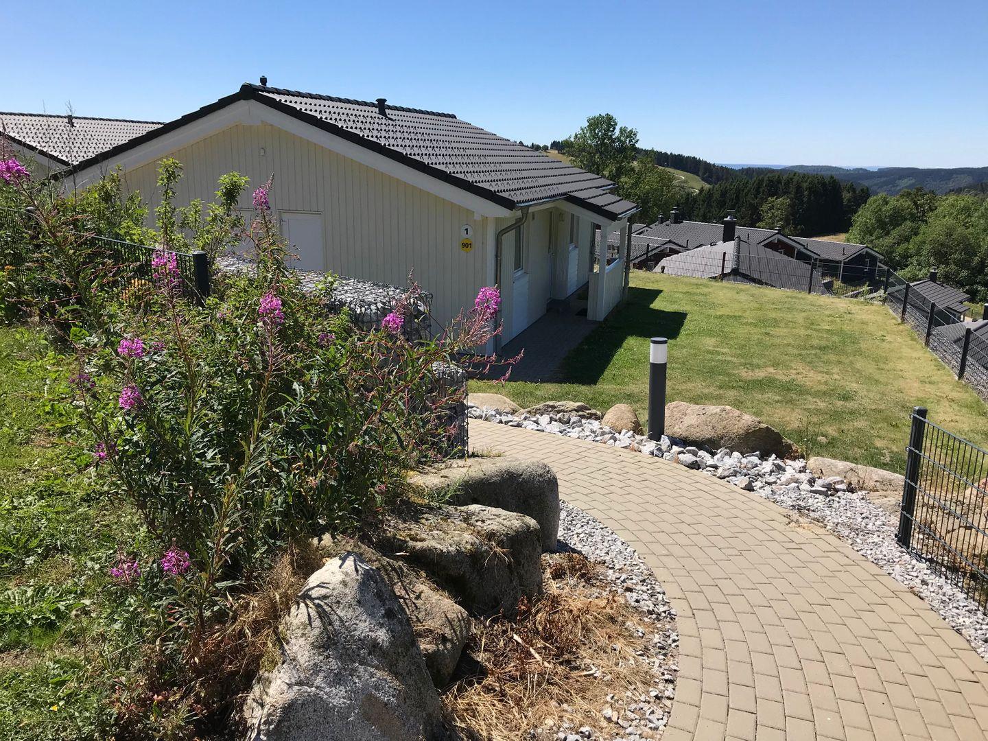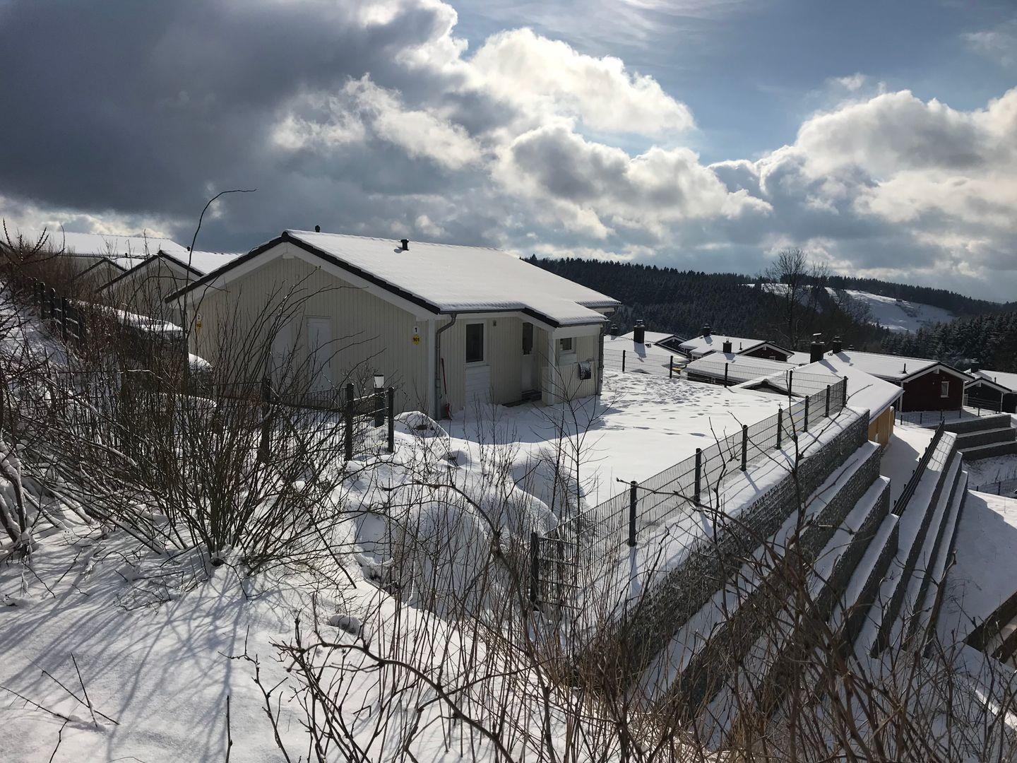 Dank der hervorragenden Lage in der höchstgelegenen Reihe mit tollem Blick über den autofreien Ferienpark und auf den Matthias-Schmidt-Berg gelangst du ohne große Umwege vom Parkplatz ins Ferienhaus und kannst deinen Urlaub entspannt beginnen.