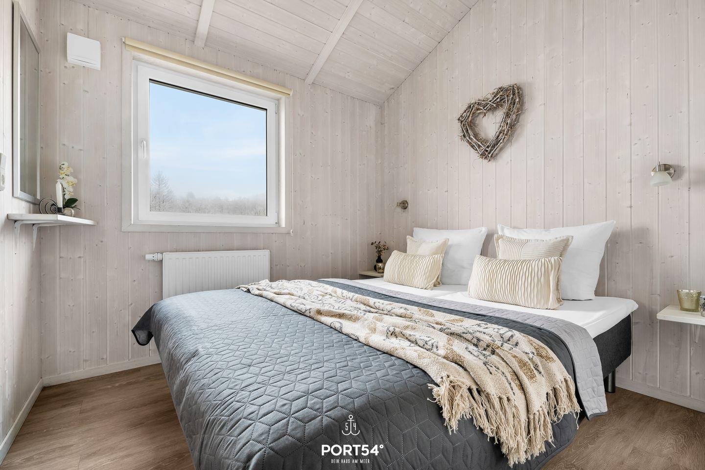 Das Schlafzimmer bietet mit zwei zusammengeschobenen Einzelbetten (zusammen 180 x 200 cm) einen behaglichen Rückzugsort für zwei Erwachsene. Natürliche Materialien und dezente Farben sorgen für ein entspannendes Ambiente. Für zusätzliche Gäste steht im Wohnbereich eine ausziehbare Schlafcouch (140 x 190 cm) bereit, die zwei Personen – ideal für Kinder oder Freunde – bequem Platz bietet. Bettwäsche und Handtücher können optional hinzu gebucht werden.